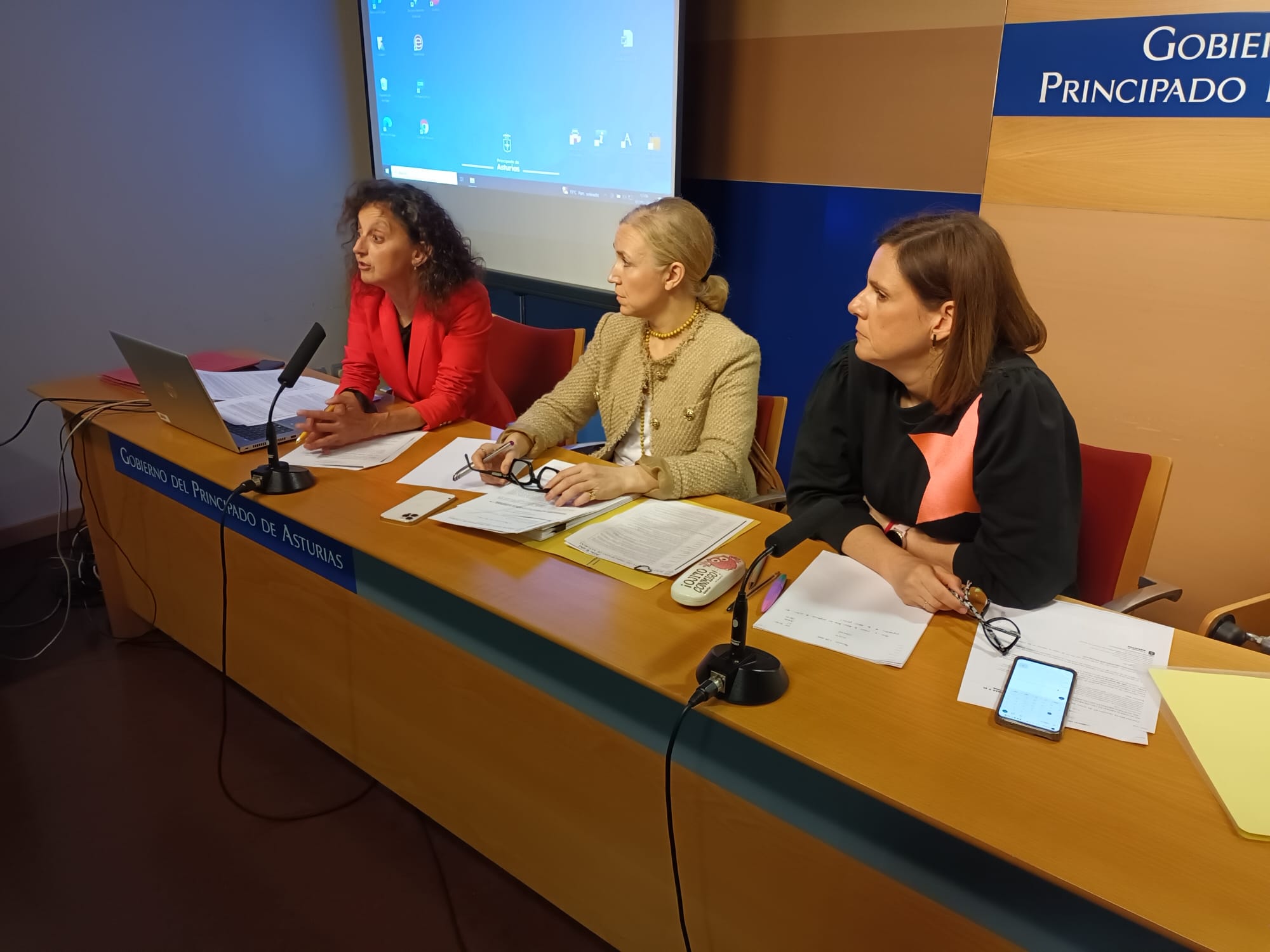 *En la mesa, en la imagen, la directora general de Centros, red 0-3 y Enseñanzas Profesionales, Eva, Ledo (primera por la izquierda), junto a dos funcionarias de su departamento durante la reunión con las organizaciones sindicales y la patronal de la concertada.