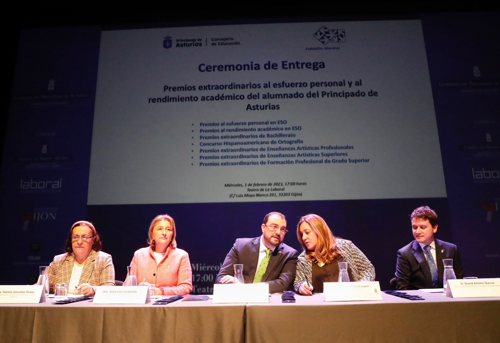 En la ceremonia, celebrada en el Teatro de La Laboral, han participado la consejera de Educación, Lydia Espina; la delegada del Gobierno en Asturias, Delia Losa; el director general de Ordenación, Evaluación y Equidad Educativa, David Artime; la concejala de Educación de Gijón, Natalia González, y los integrantes de los jurados y tribunales, además de las familias y una nutrida representación de las direcciones de los centros, las asociaciones de padres y madres y otras administraciones educativas.