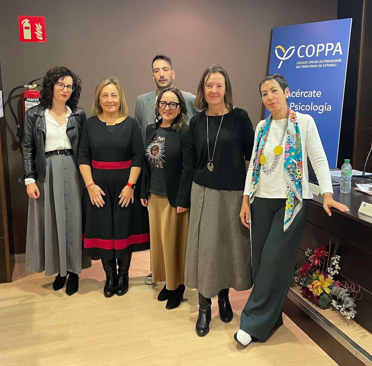 La consejera de Educación, Lydia Espina, con parte de la directiva del Colegio Oficial de Psicología del Principado de Asturias y con la responsable del Servicio de Planificación de Salud Mental de la Consejería de Salud, Purificación Saavedra.