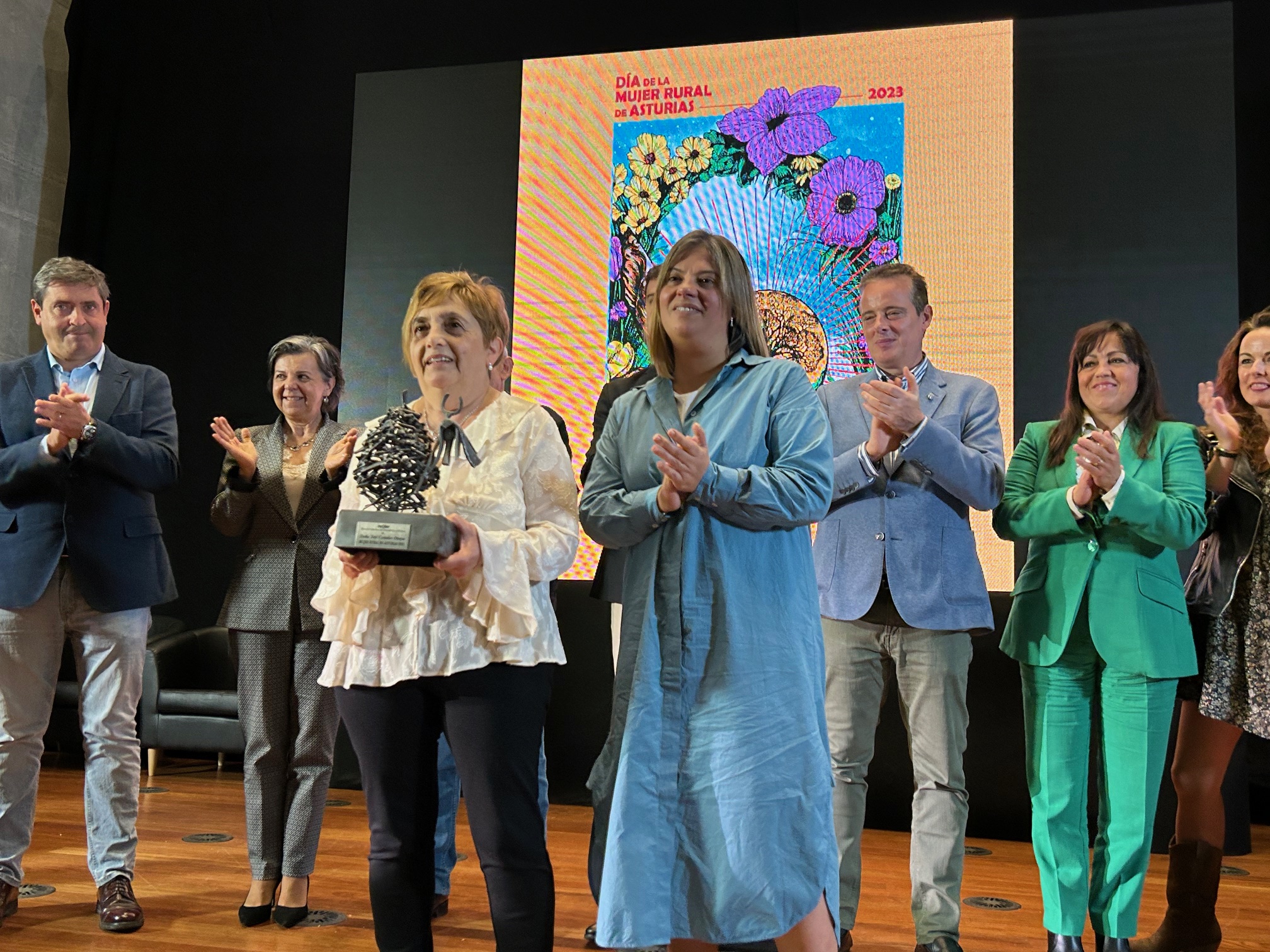 En la imagen (de izqda. a dcha.): Marcos Niño, director general de Reto Demográfico; Cecilia Pérez, presidenta de la FACC; Belarmino Fernández, presidente de Reader; Óscar Pérez, alcalde de Valdés; María Teresa Costales, Mujer Rural de Asturias 2023; Francisco González, dierctor general de Pesca Marítima; Marcelino Marcos, consejero de Medio Rural y Política Agraria, y María Jesús Álvarez, directora general de Igualdad.