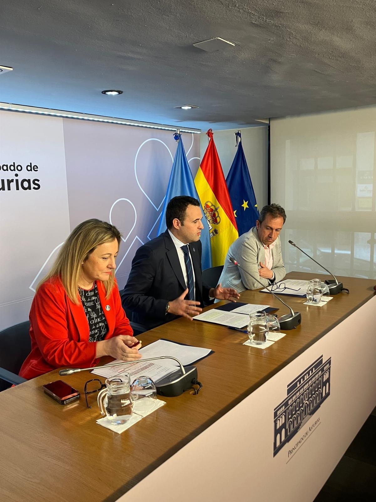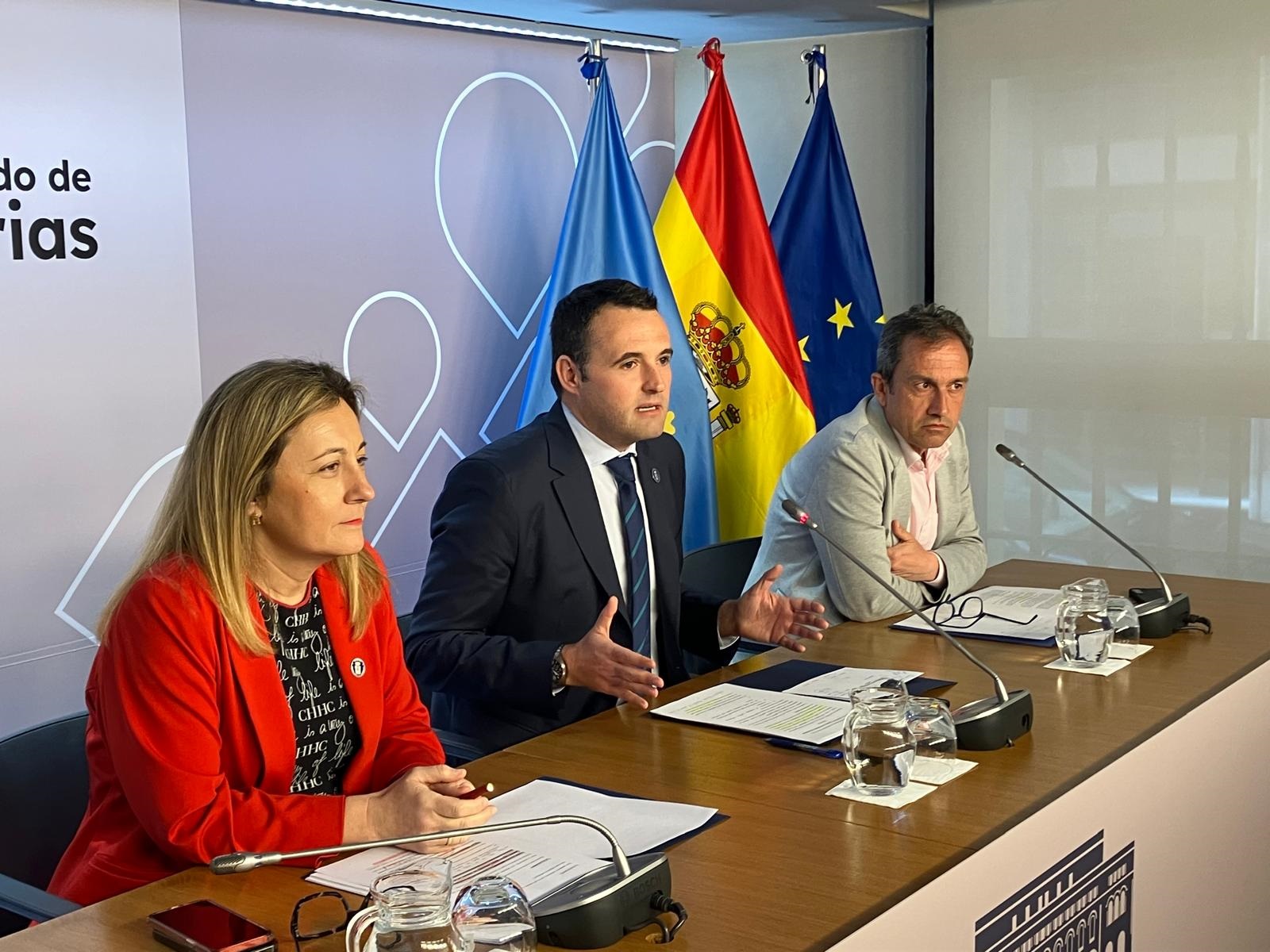 De izquierda a derecha, la consejera de Educación, Lydia Espina; el consejero de Hacienda y portavoz del Gobierno de Asturias, Guillermo Peláez, y el consejero de Ordenación de Territorio, Urbanismo, Vivienda y Derechos Ciudadanos, Ovidio Zapico.