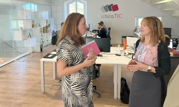 La consejera de Hacienda, Ana Cárcaba, visita la empresa Vulpe TI, junto al alcalde de Cangas del Narcea, José Víctor Rodríguez, localidad originaria de los fundadores de esta empresa.