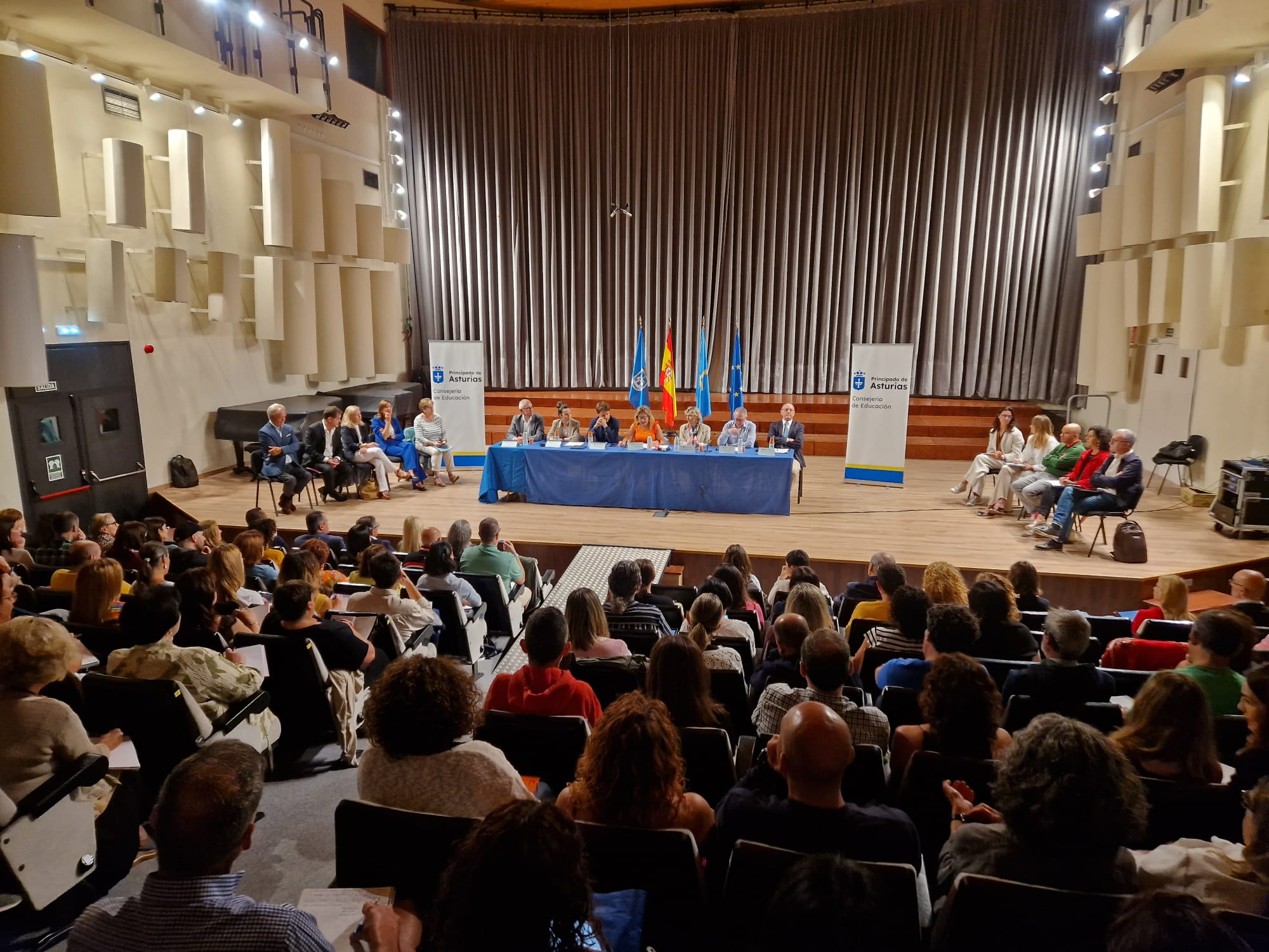 La consejera Lydia Espina, acompañada de todo su equipo, ha presidido en el Conservatorio de Oviedo tres encuentros consecutivos con las direcciones de Infantil, Primaria y los Centros de Educación Especial; las de Secundaria, Formación Profesional y el resto de enseñanzas; y con la red concertada.