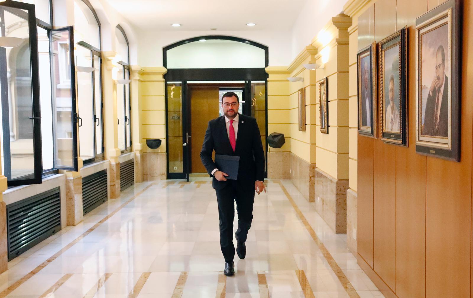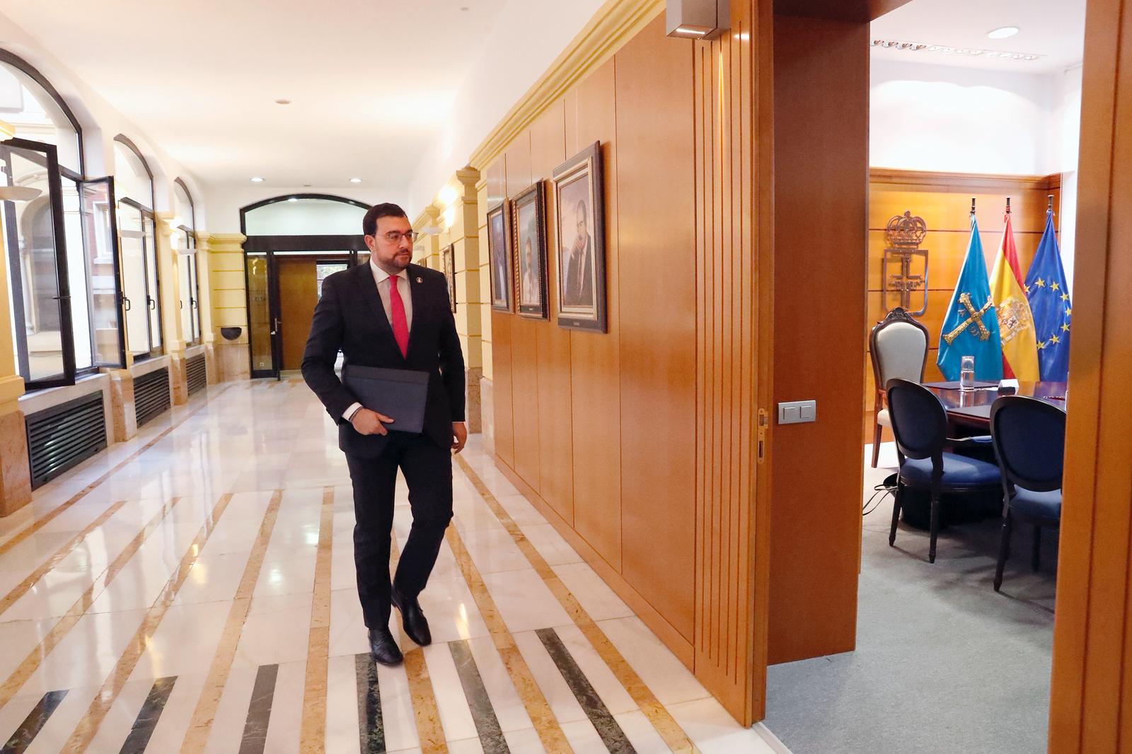 El presidente del Principado de Asturias, Adrián Barbón (en la cabecera de la mesa en la imagen), preside la reunión del Consejo de Gobierno.