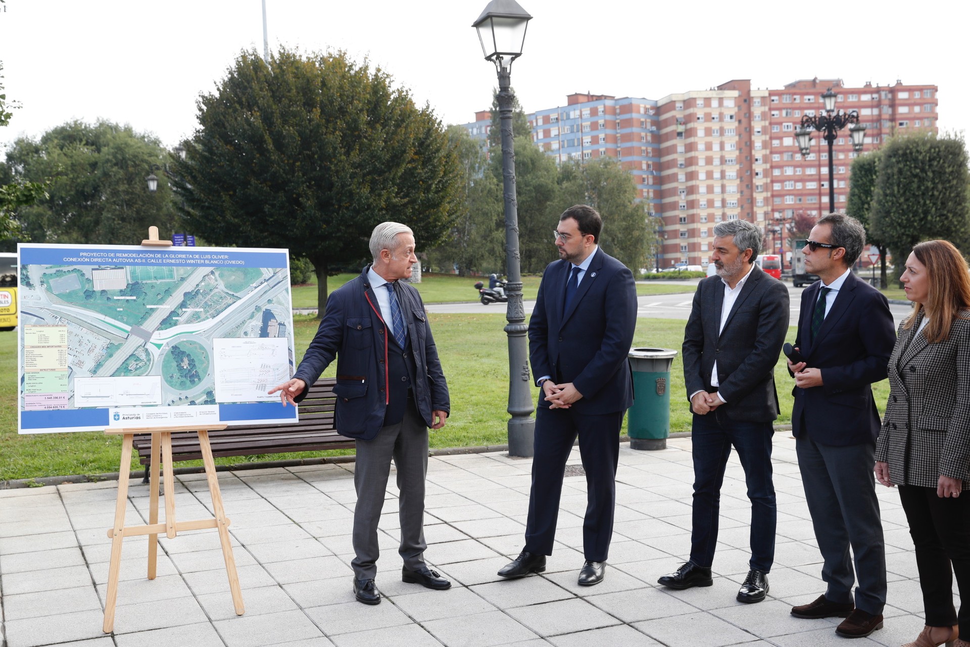 El Gobierno de Asturias tiene obras en marcha por más de 11,3 millones para fomentar la movilidad sostenible en Oviedo/Uviéu. El presidente, Adrián Barbón, ha asistido esta mañana al inicio de dos de estas actuaciones: la ampliación de la glorieta de Luis Oliver y la construcción de la pasarela peatonal que conectará las estaciones de autobús y tren.