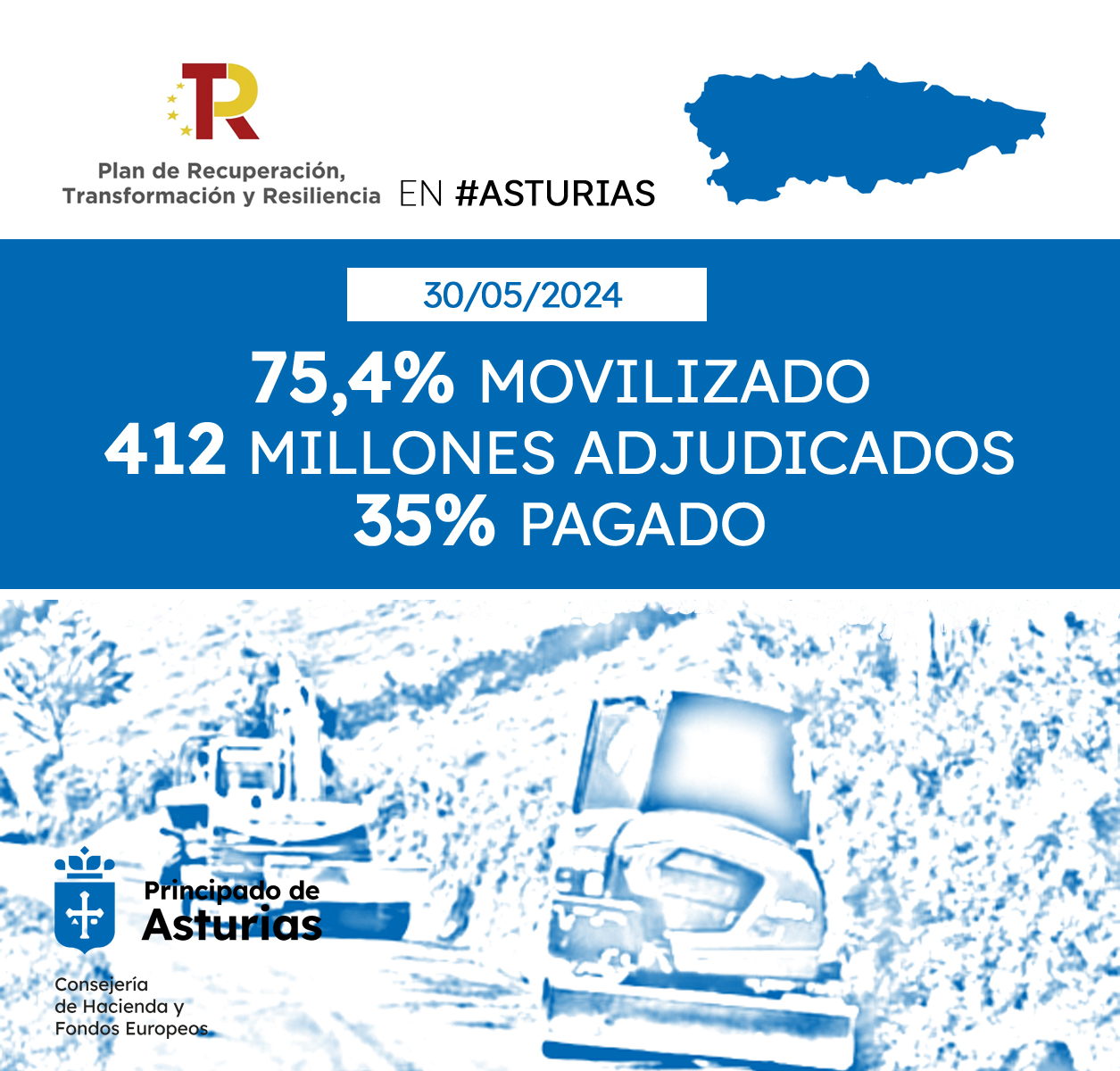 El Gobierno del Principado mantiene el buen ritmo de ejecución de las partidas procedentes del Mecanismo de Recuperación y Resiliencia (MRR). Según la última actualización, la comunidad ha movilizado ya el 75,4% de los fondos cobrados, lo que supone un importe de 509,2 millones.