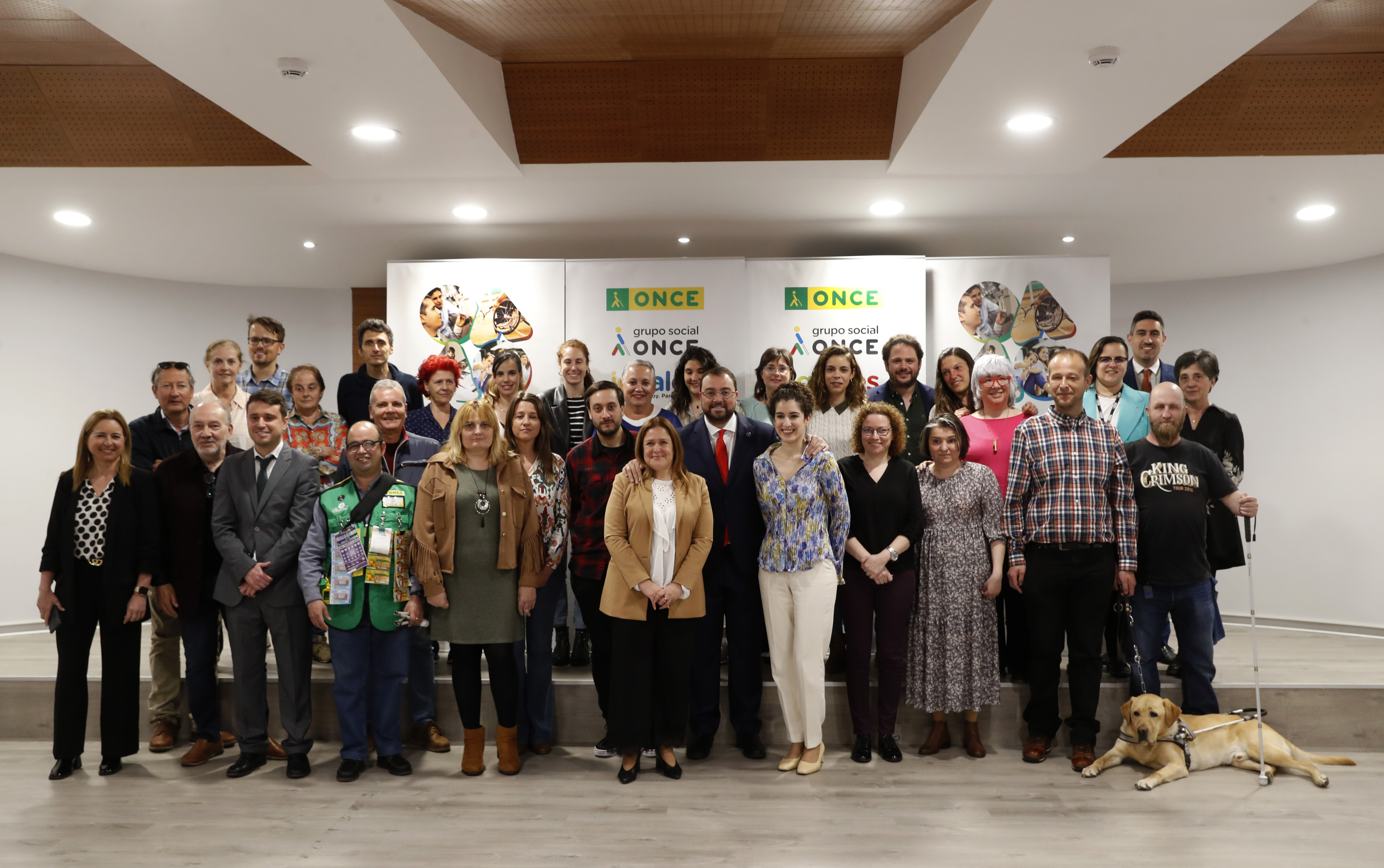 El presidente del Principado de Asturias, Adrián Barbón, y la jefa del Departamento de Servicios Sociales de la ONCE, Virginia Corredera.