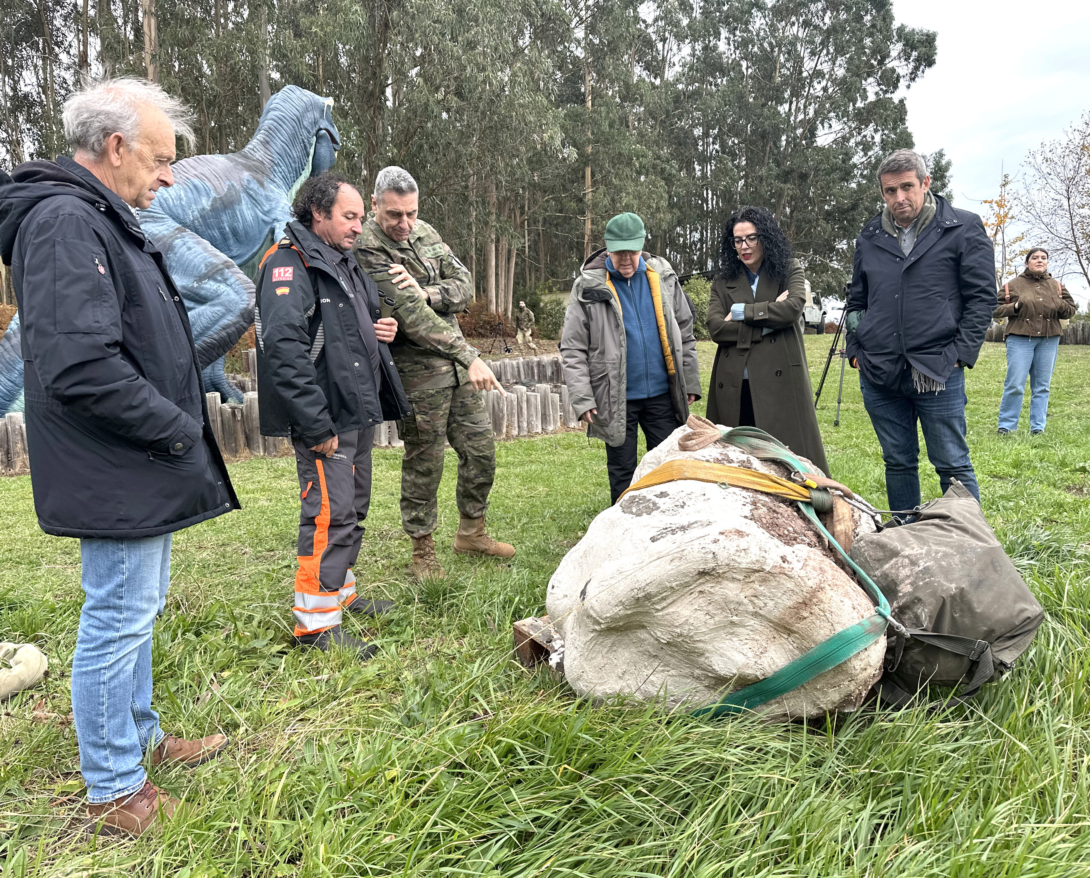 Gutiérrez ha asistido a la llegada por aire del material, junto con el coronel delegado de Defensa en Asturias, Jesús Moreno del Valle; el teniente coronel Ismael Pérez Cobo y el subteniente José Manuel Pérez Martínez, además del alcalde de Colunga, José Ángel Toyos, y el equipo científico del museo: José Carlos García-Ramos, Laura Piñuela y Ángel García.