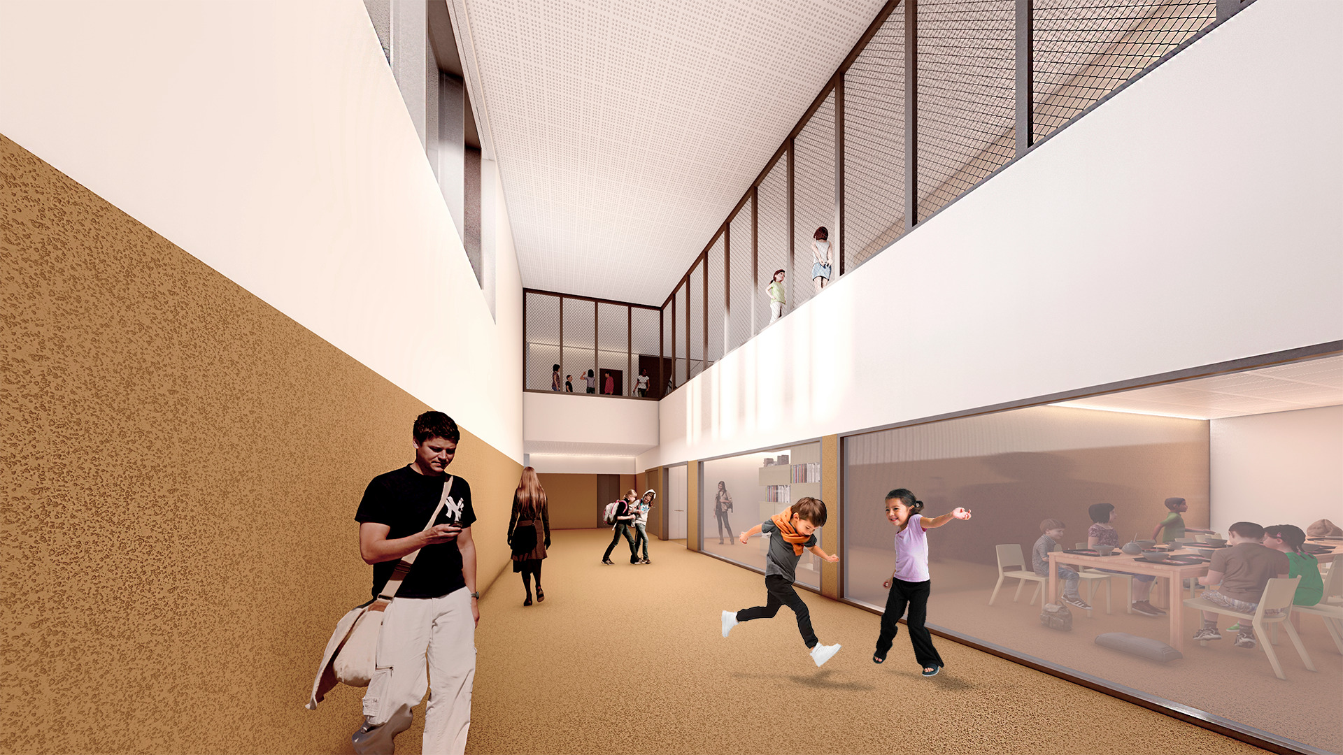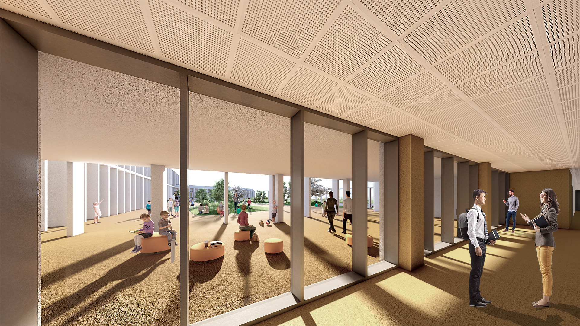 Los espacios educativos están pensados de modo flexible, para un uso individual o colectivo que facilite la convivencia y permita agrupar o dividir aulas mediante tabiques móviles. Una característica esencial es su transparencia. Dispondrán de amplios acristalamientos que permiten la visión a pasillos y zonas de tránsito y también aprovechar la luz natural.