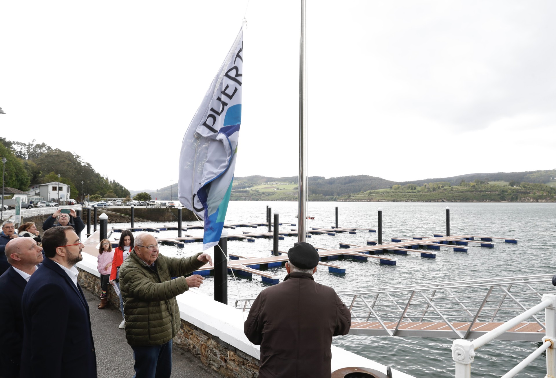 El presidente del Principado de Asturias, Adrián Barbón, ha participado en la inauguración del nuevo pantalán del puerto de Castropol, junto a José Félix González Vijande y Federico Fernández Ferrería, dos hombres ligados a la mar.