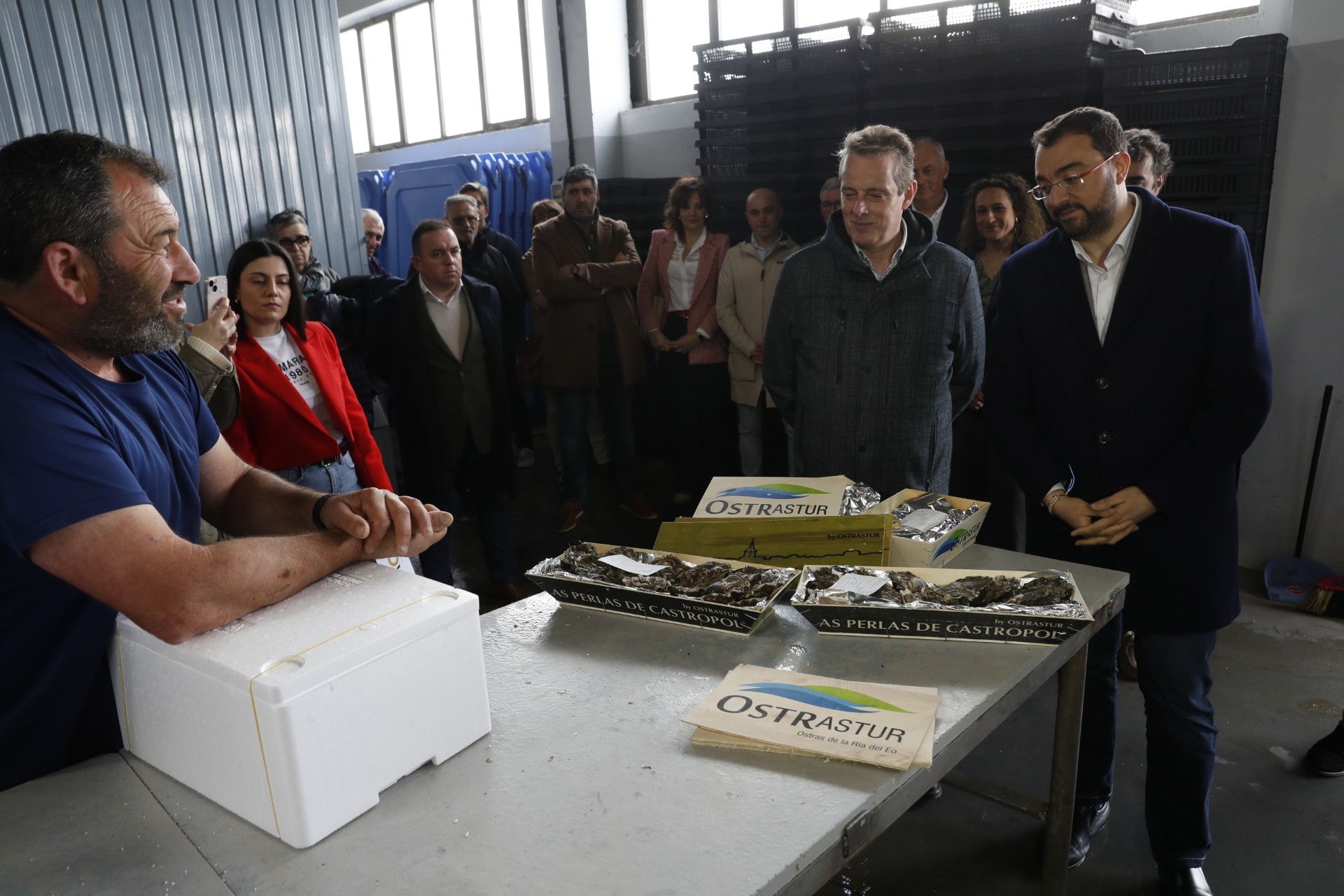 Adrián Barbón ha programado diversos actos en Castropol que han culminado a última hora de la tarde con la inauguración del X Festival de la Ostra Somos la ostra. Su recorrido por el concejo ha comenzado en el Centro de Experimentación Pesquera, inaugurado en 1989 para dar servicio a las empresas de cultivos marinos de ostra y almeja, así como a los mariscadores de la ría del Eo. Su actividad se centra ahora principalmente en el cultivo de semillas de almeja, erizo de mar y ostras y es el equipamiento en el que se concentra toda la investigación regional en materia de acuicultura. “Es un centro que representa nuestra apuesta por la acuicultura, por el futuro y por la investigación, algo que como presidente debo poner en valor”, ha señalado el jefe del Ejecutivo.