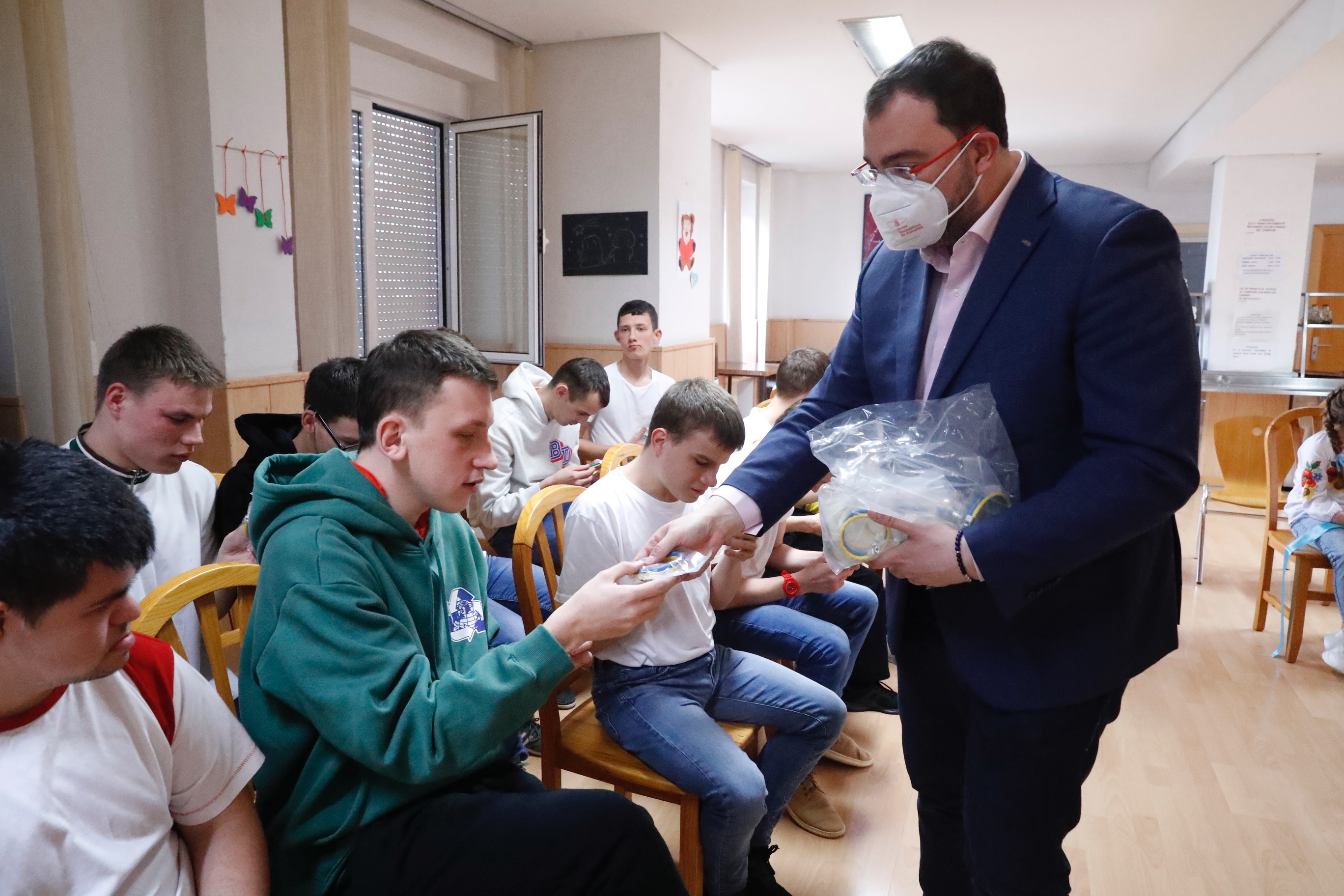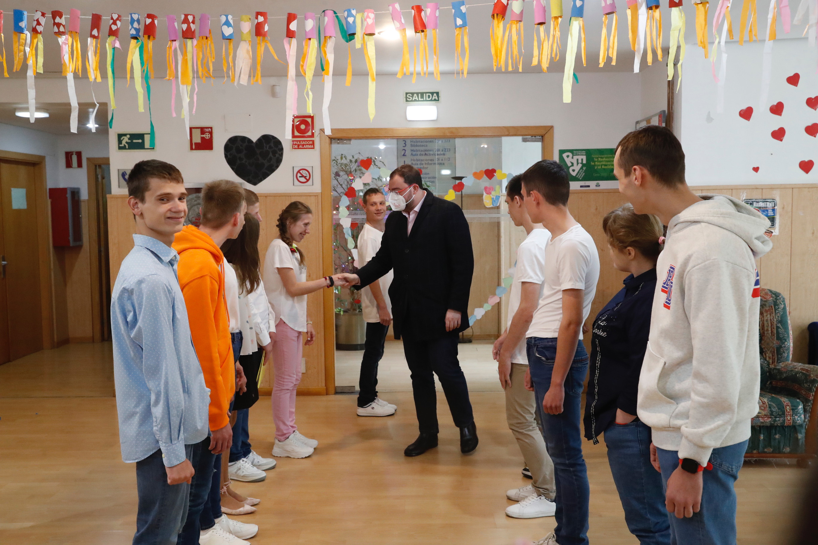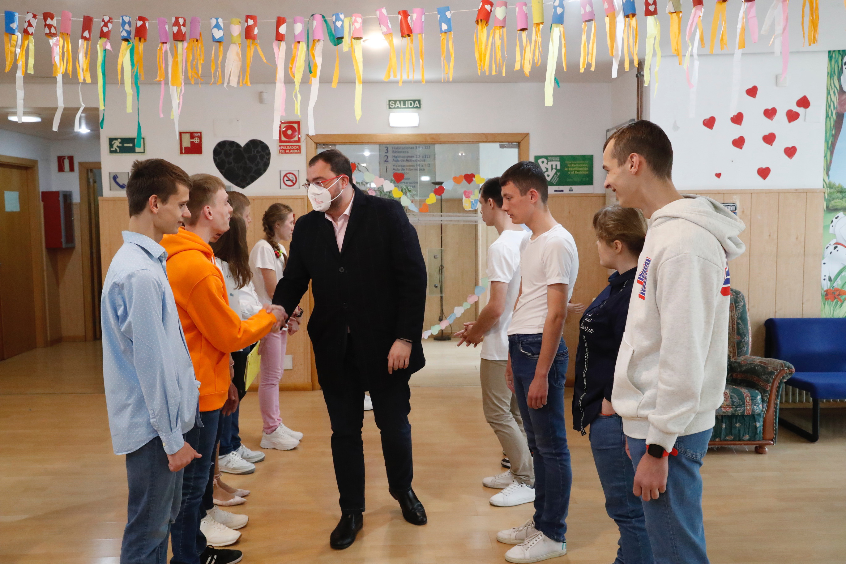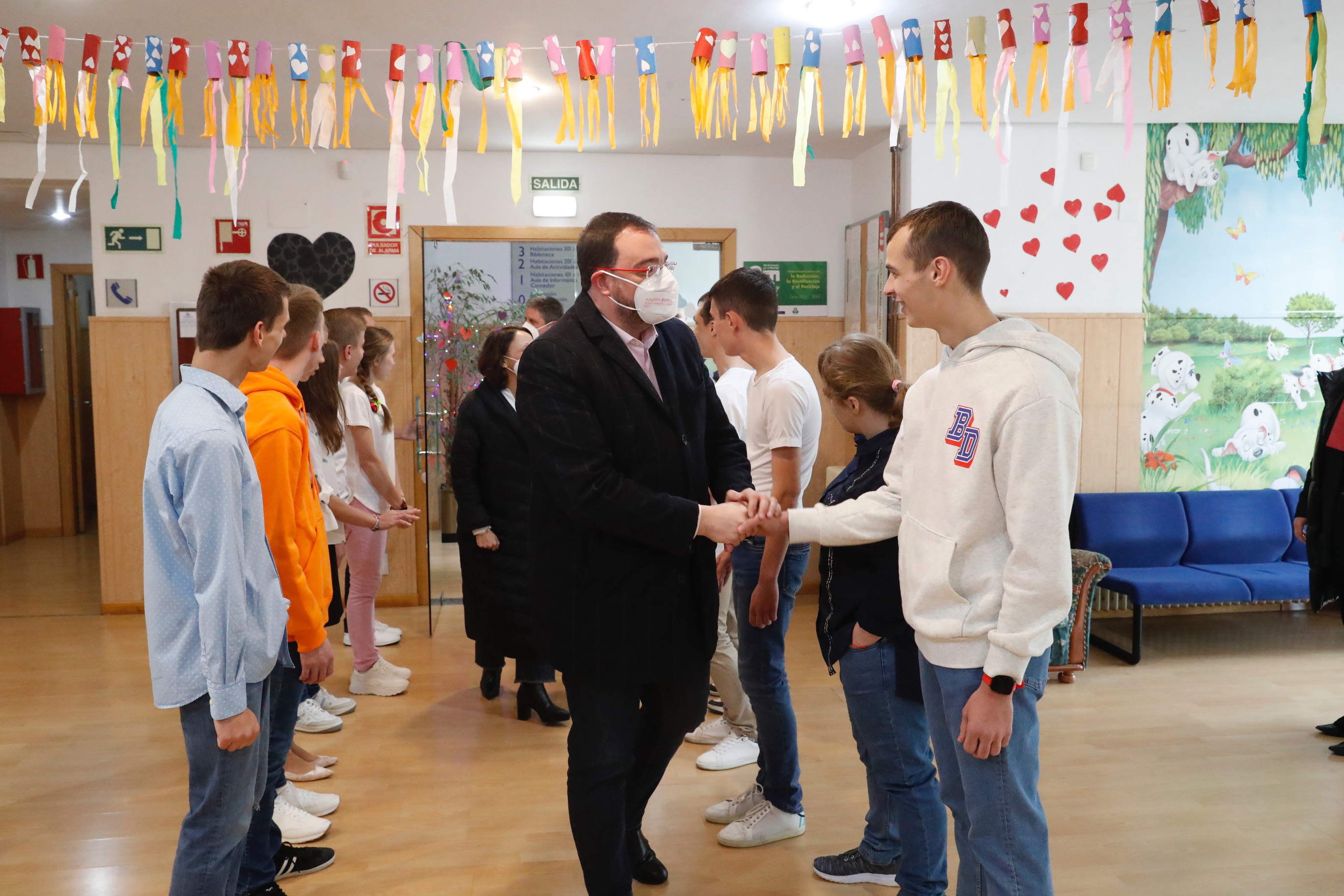 - El presidente del Principado visita a un grupo de ucranianos procedentes de un orfanato que residen en el albergue Ramón Menéndez Pidal