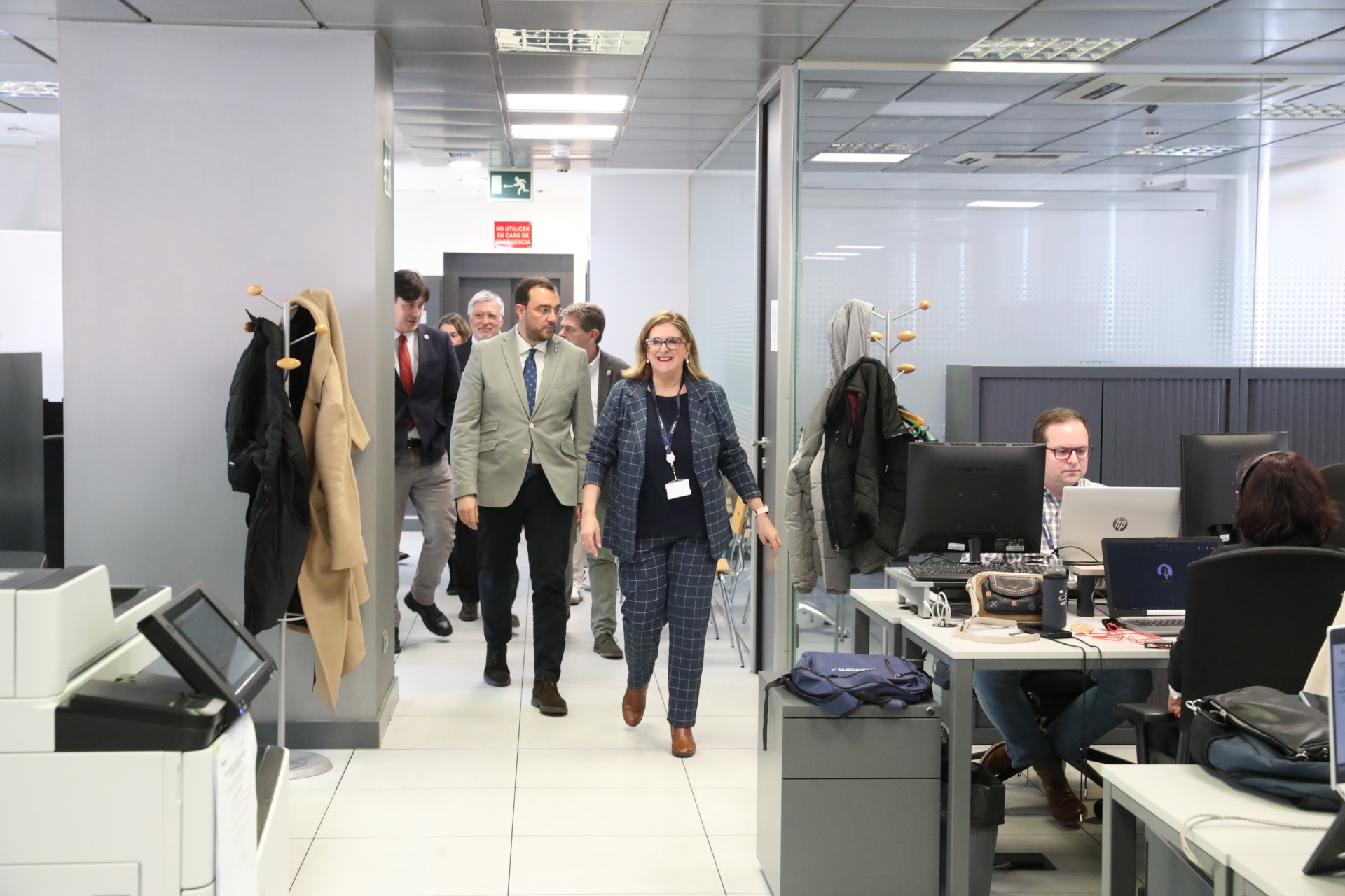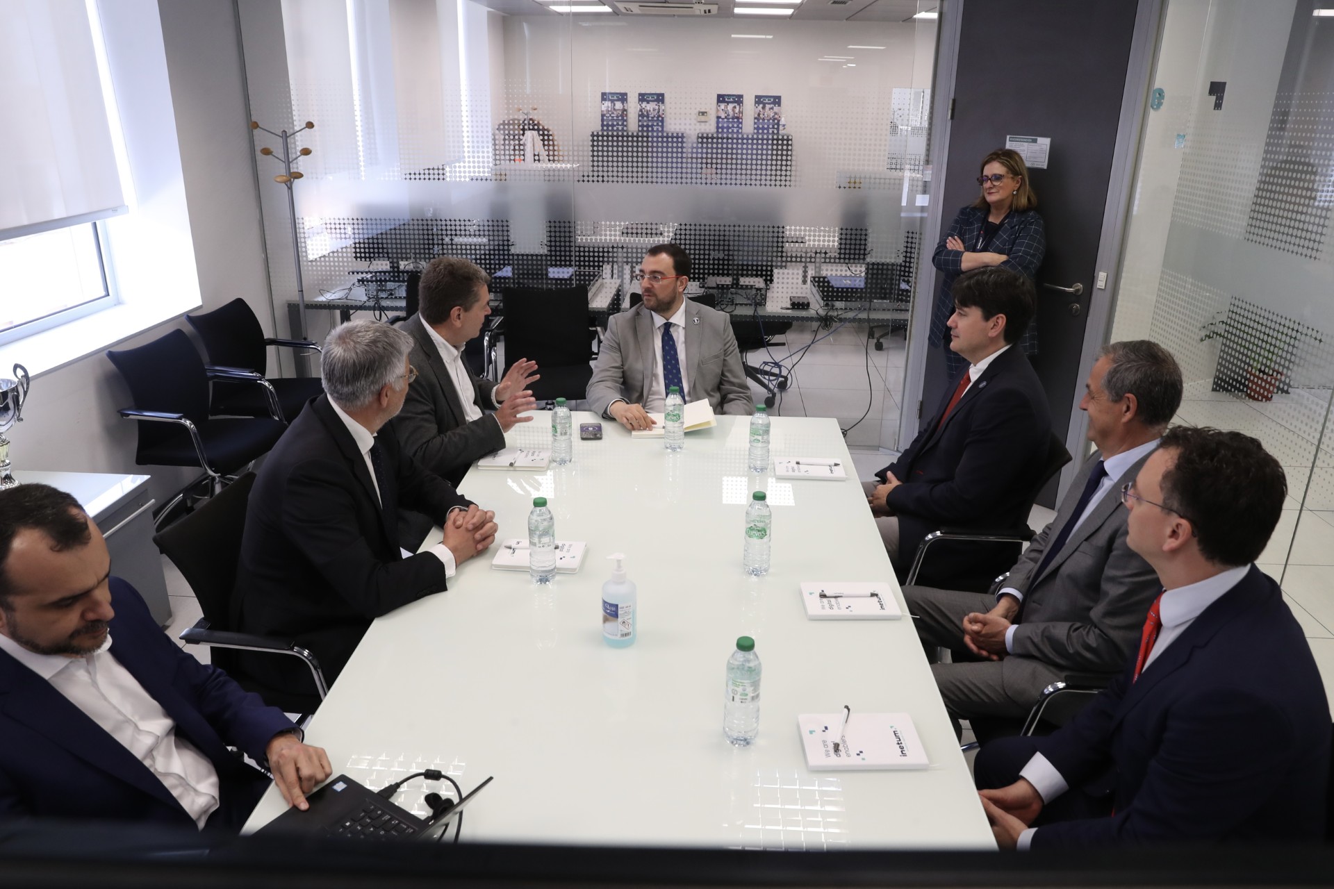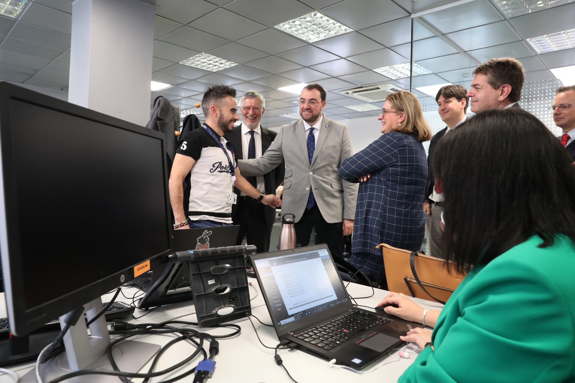 El presidente del Principado, Adrián Barbón, ha visitado tambén el centro especializado en desarrollo de software en Asturias de la empresa Inetum.