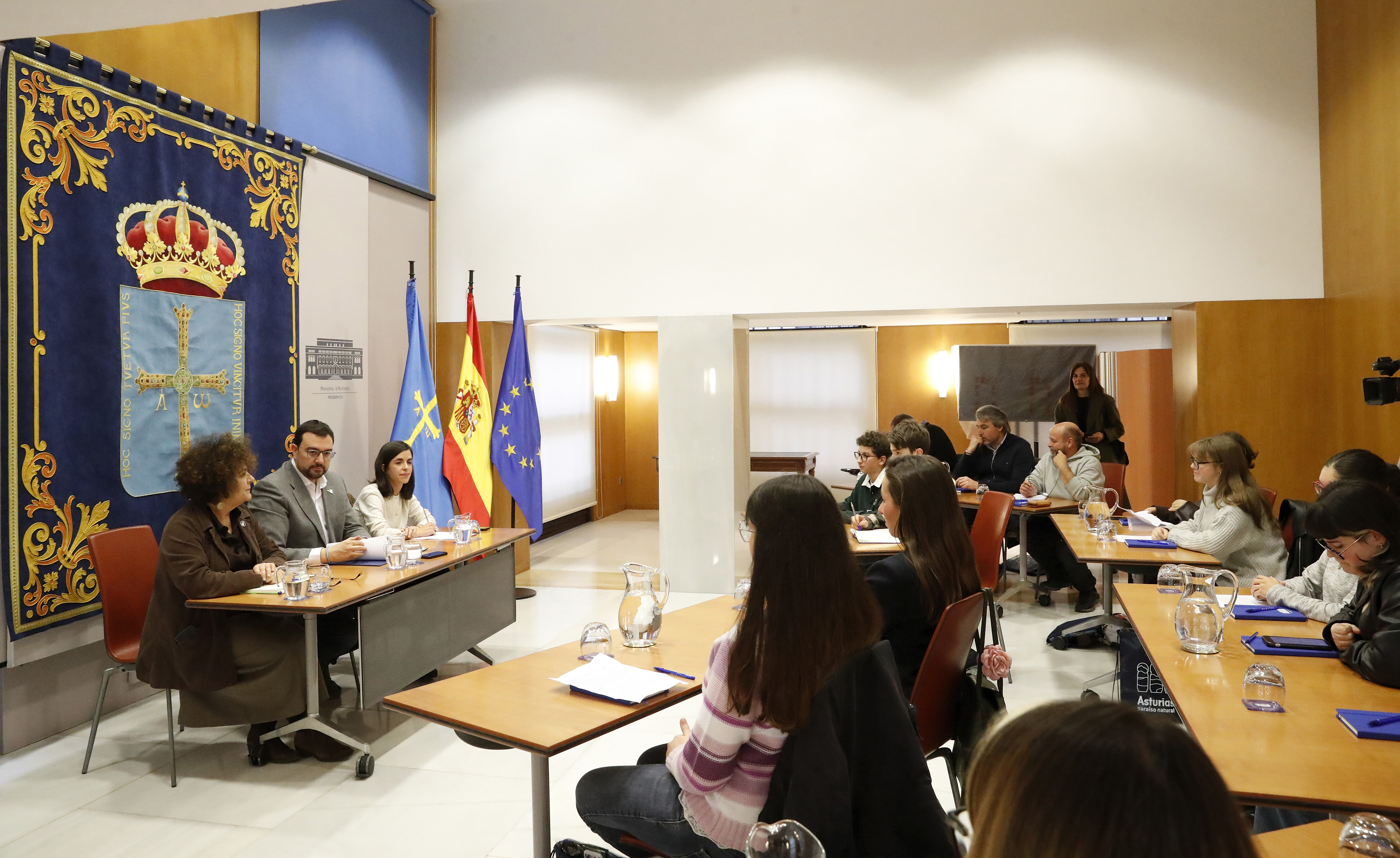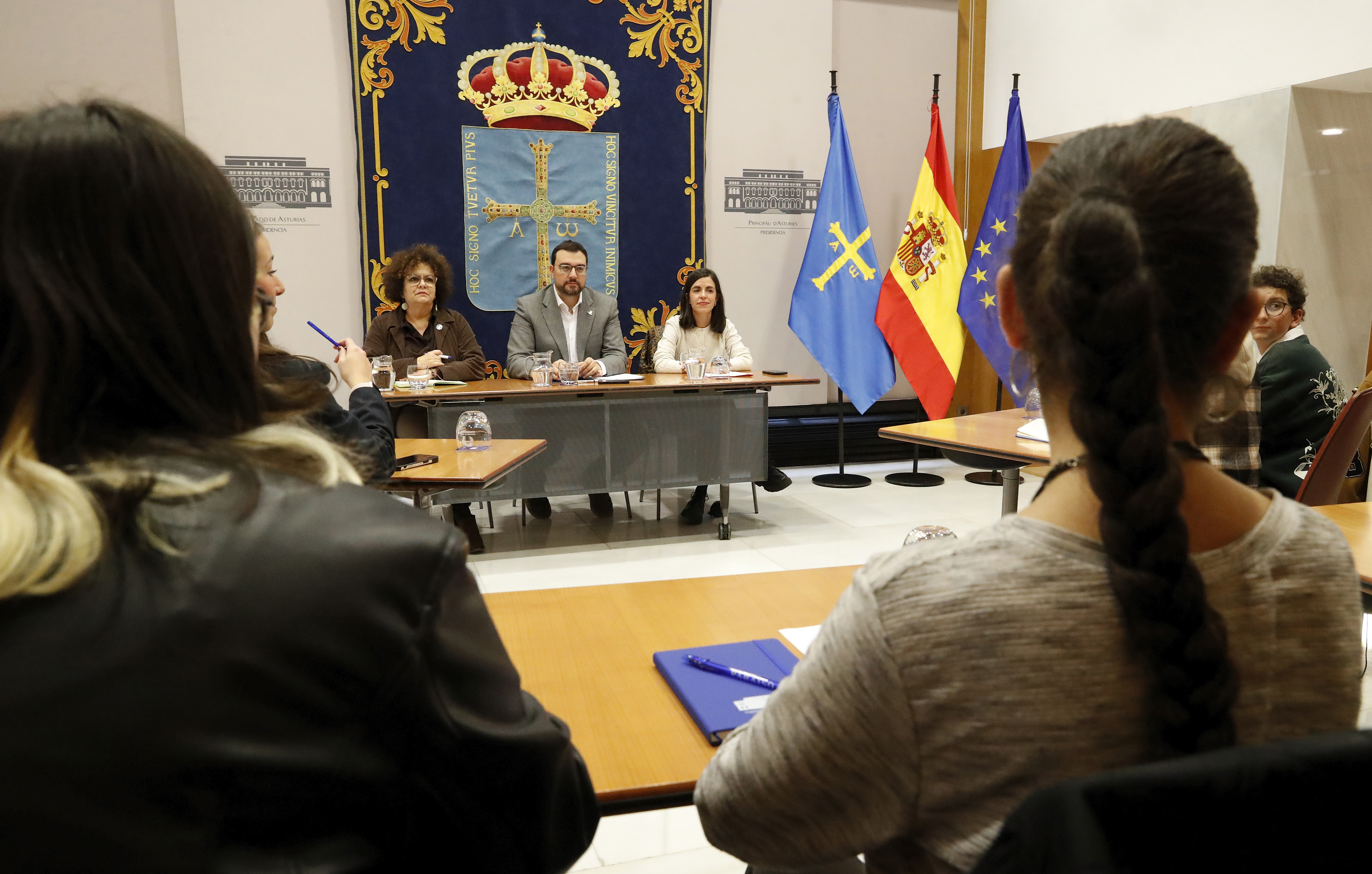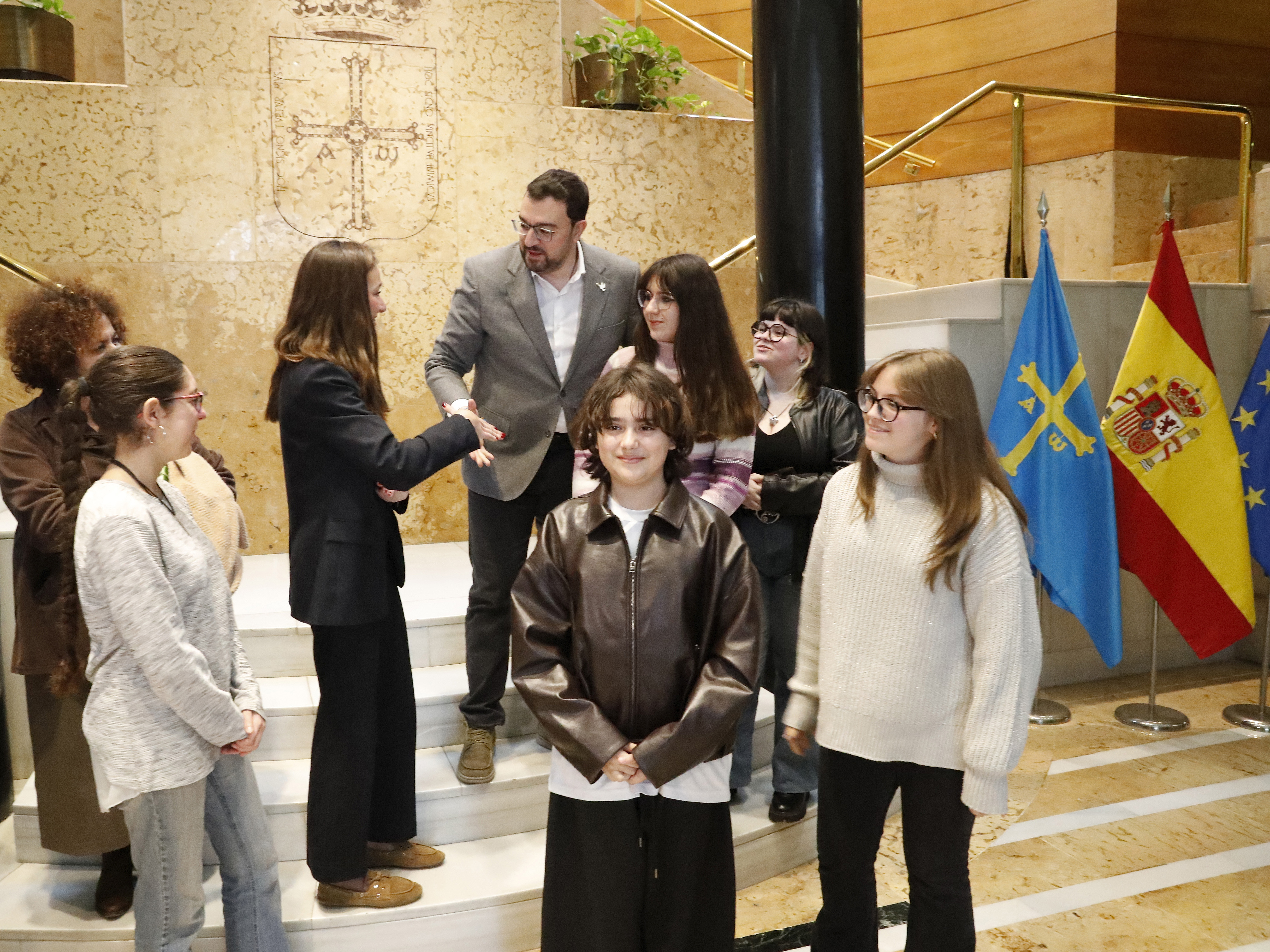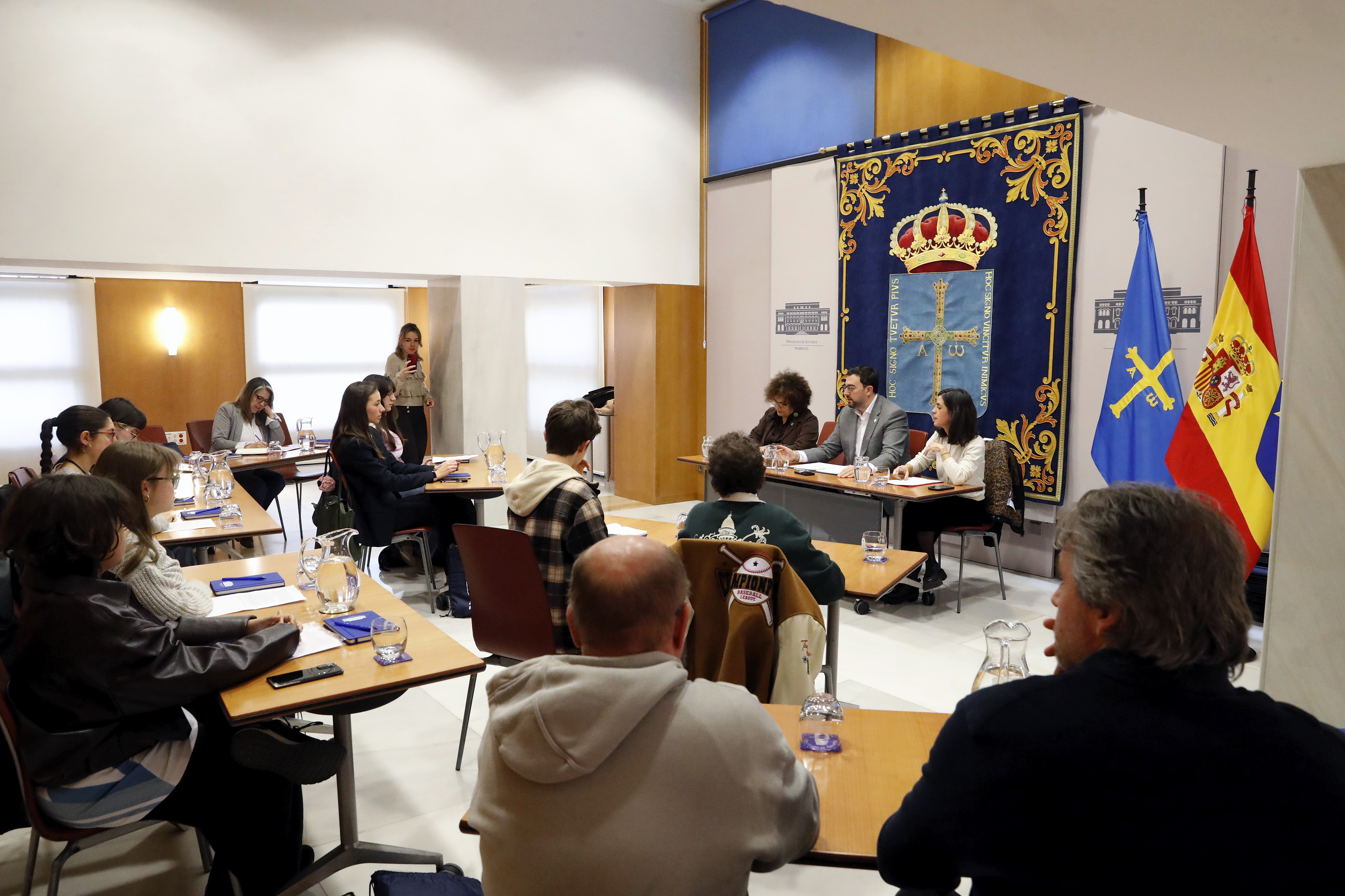 El presidente del Principado de Asturias, Adrián Barbón, ha celebrado un encuentro con el Comité Autonómico de Participación de la Infancia y Adolescencia de Asturias. A la reunión han asistido también la consejera de Derechos Sociales y Bienestar, Marta del Arco, y la directora general de Infancia y Familias, Clara Sierra.