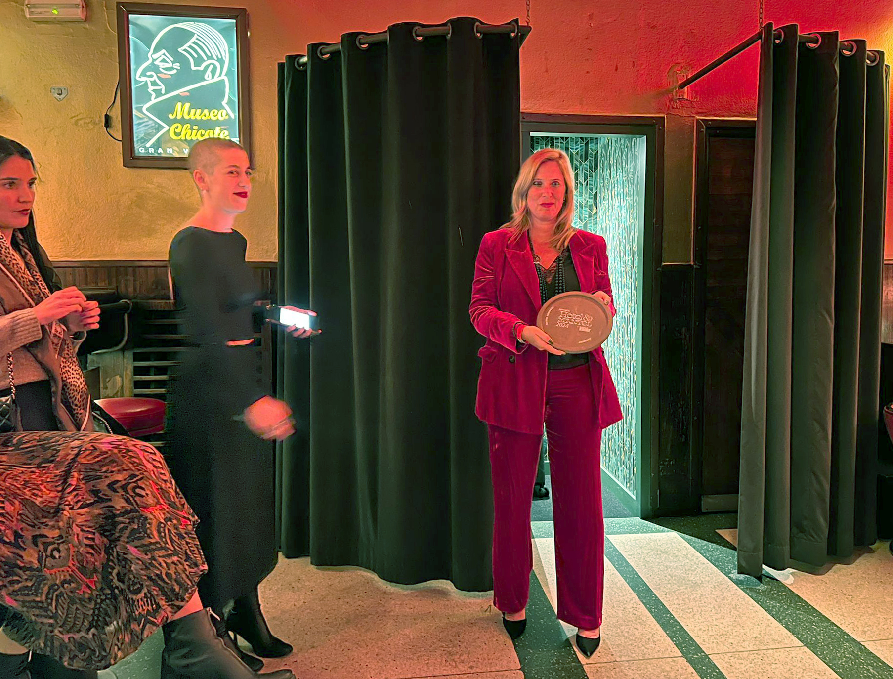 * En la imagen, la viceconsejera de Turismo, Lara Martínez, recoge el galardón en el Museo de Chicote, en Madrid.