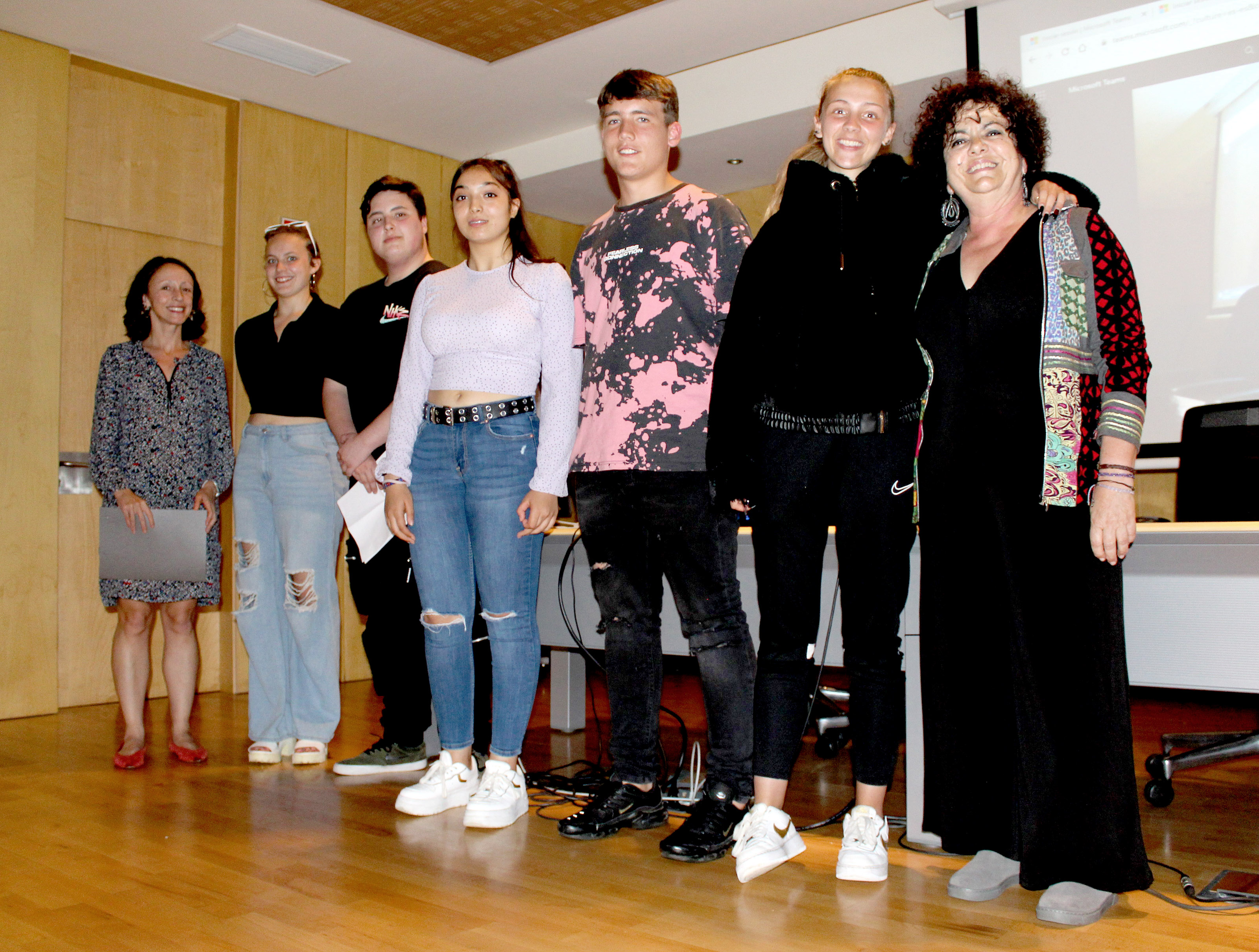 *En la imagen (de izqda. a dcha.): la consejera de Derechos Sociales y Bienestar, Melania Álvarez; los menores tutelados Noemí Calviño, Álex Ramos, Rebeca Hernández, Xavi Suárez, Icíar Martíins, y la directora del Instituto Asturiano de Atención Integral a la Infancia y la Familia, Marta del Arco.