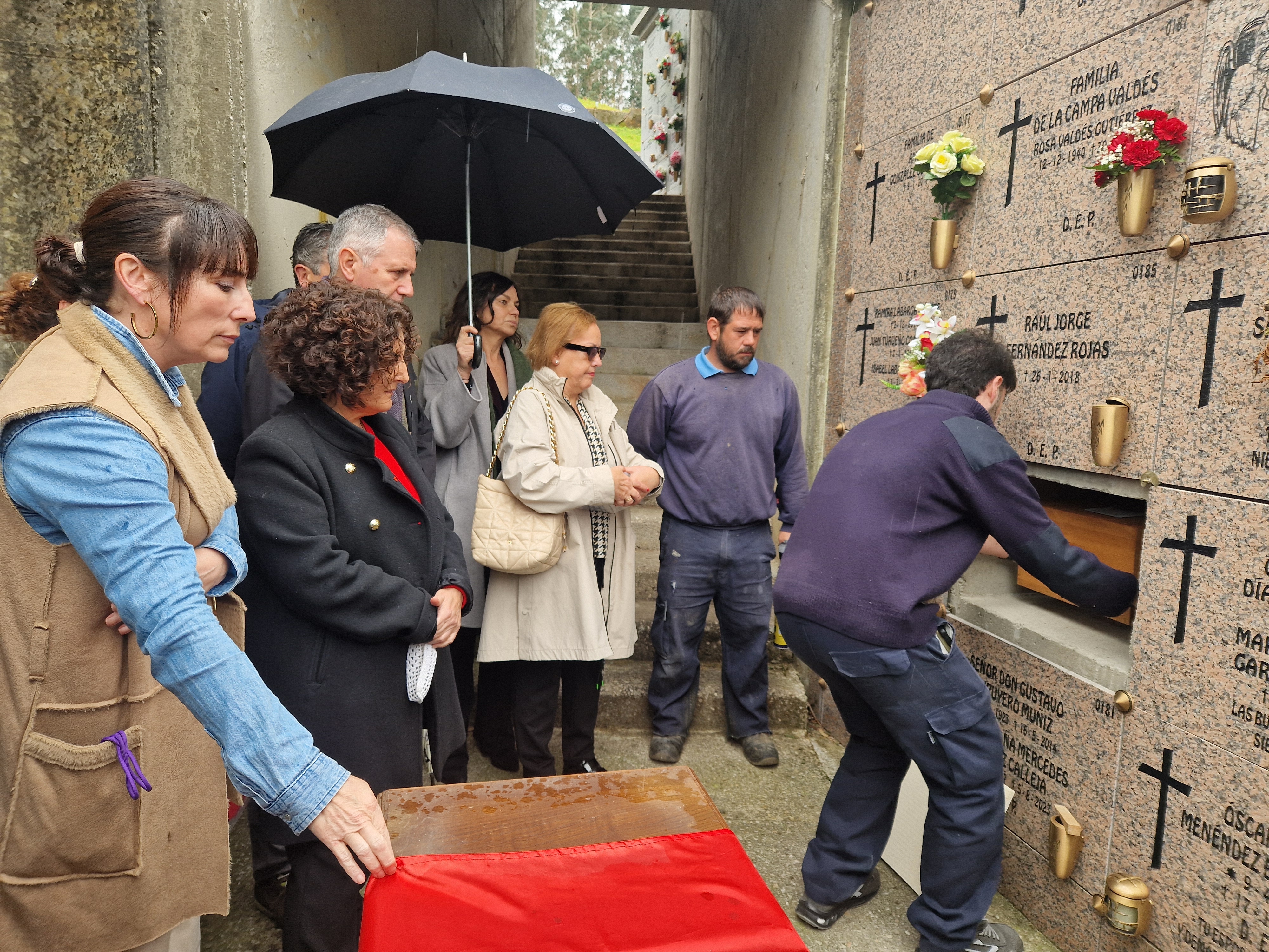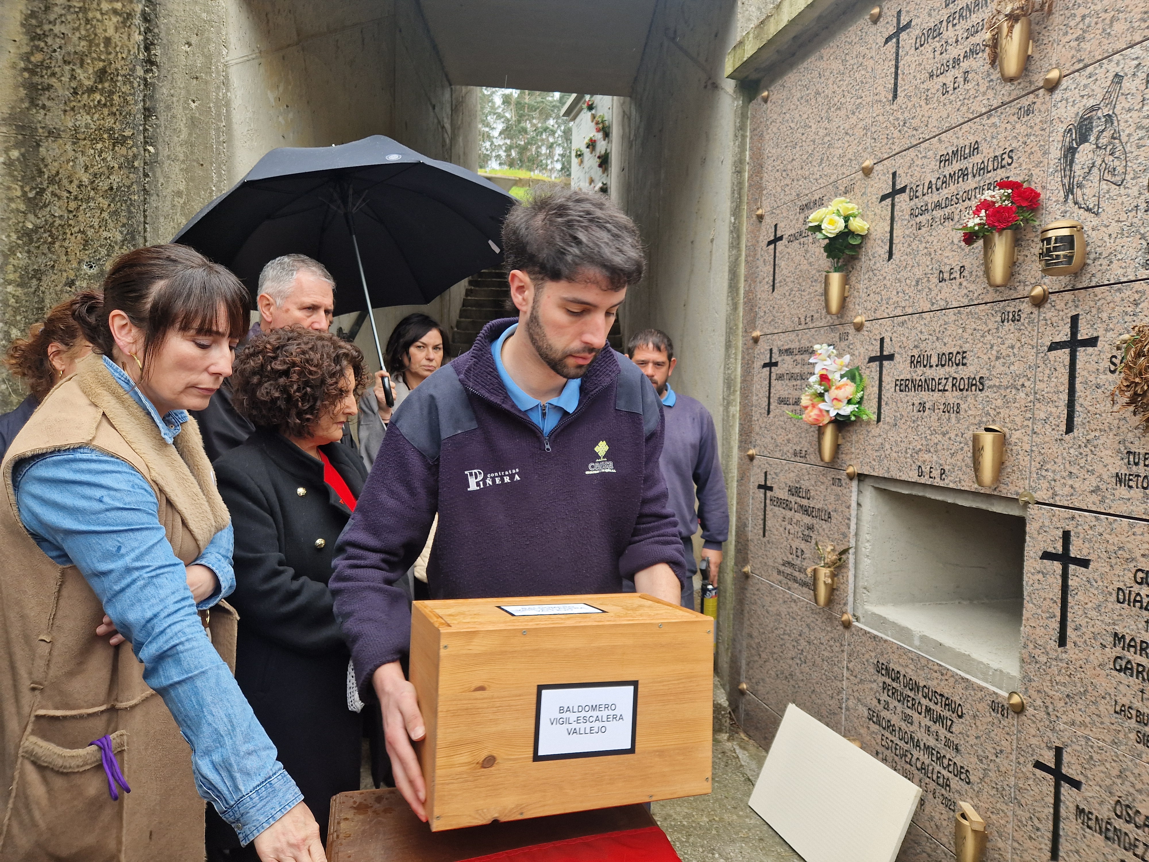 Al acto celebrado en el cementerio de Deva han acudido, entre otras personas, el alcalde de Celanova, Antonio Puga; representantes de la Universidad de Santiago y la concejala de Memoria Democrática del Ayuntamiento de Gijón, Montserrat López Moro, además de la sobrina de Baldomero Vigil-Escalera, Pilar Solares Vigil-Escalera, y su marido, José Manuel García Fernández.