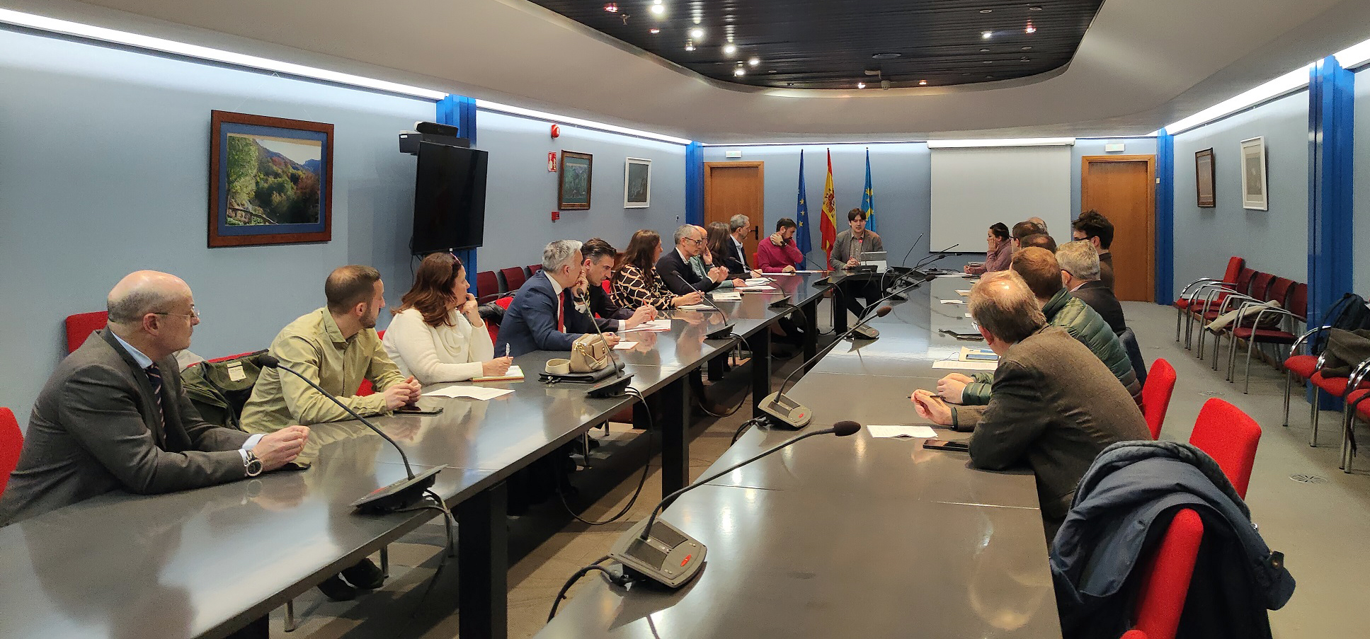 El consejero de Ciencia, Empresas, Formación y Empleo, Borja Sánchez, se ha reunido hoy con representantes de los 14 centros de I+D+i de grandes empresas para conocer la evolución de los proyectos en Asturias.