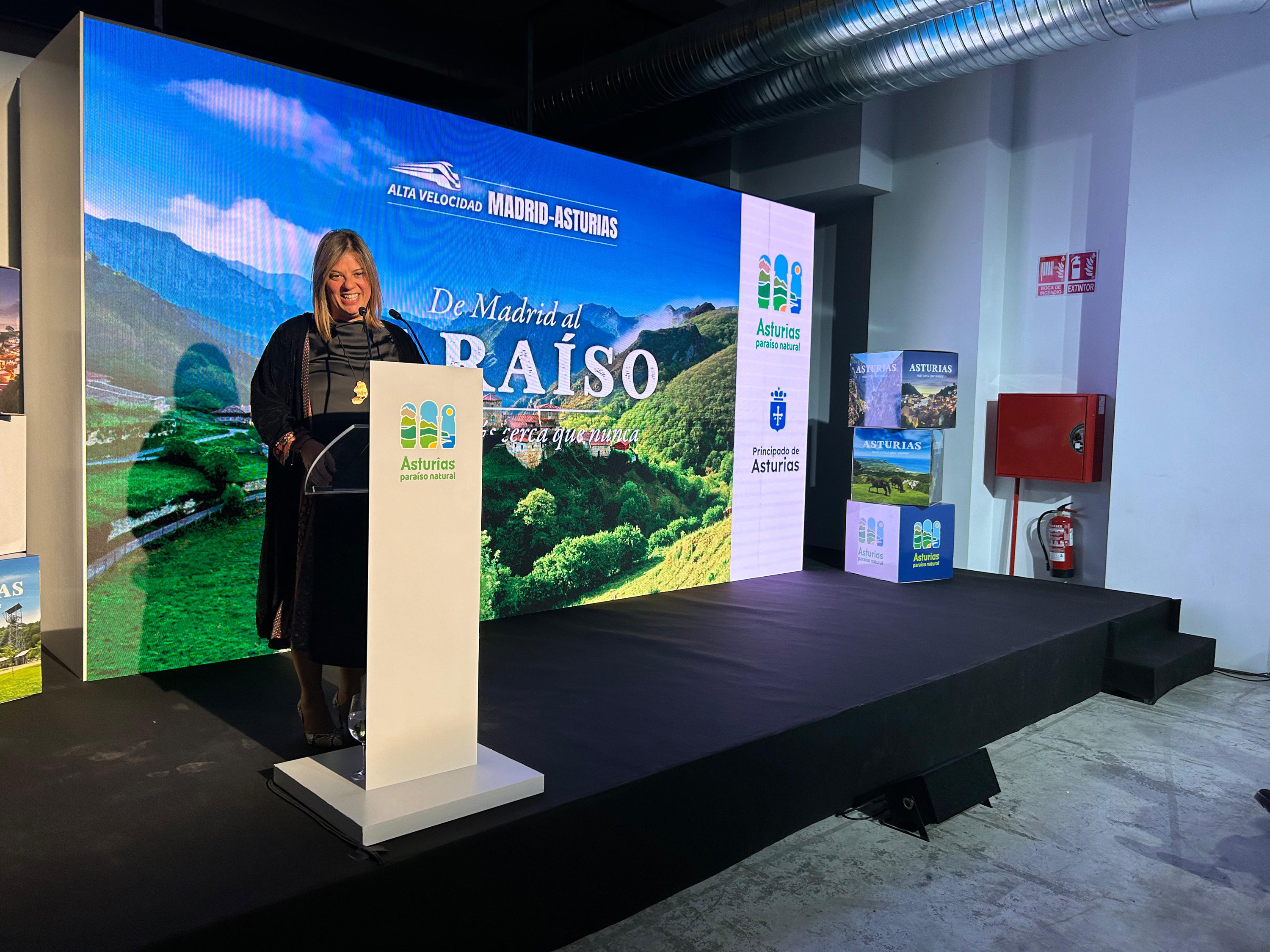 La vicepresidenta y consejera de Presidencia, Reto Demográfico, Igualdad y Turismo, Gimena Llamedo, ha participado hoy en la capital española en la presentación de la campaña Asturias, más cerca que nunca. De Madrid al Paraíso. La iniciativa se ha desarrollado con motivo de la llegada de la alta velocidad ferroviaria a Asturias, prevista para la próxima semana.