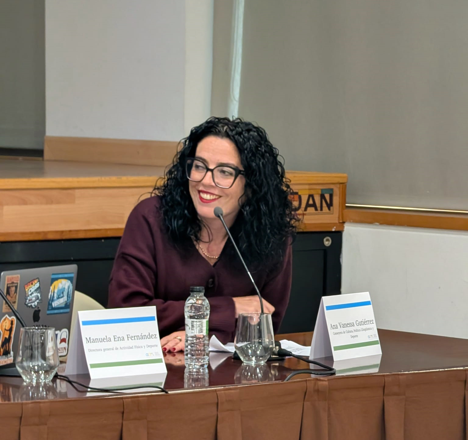 * En la imagen (de izqda. a dcha.): el doctor en Ciencias del Deporte, Hugo Olmedillas; la directora general de Actividad Física y Deporte, Manuela Fernández Ena, y la consejera de Cultura, Vanessa Gutiérrez.