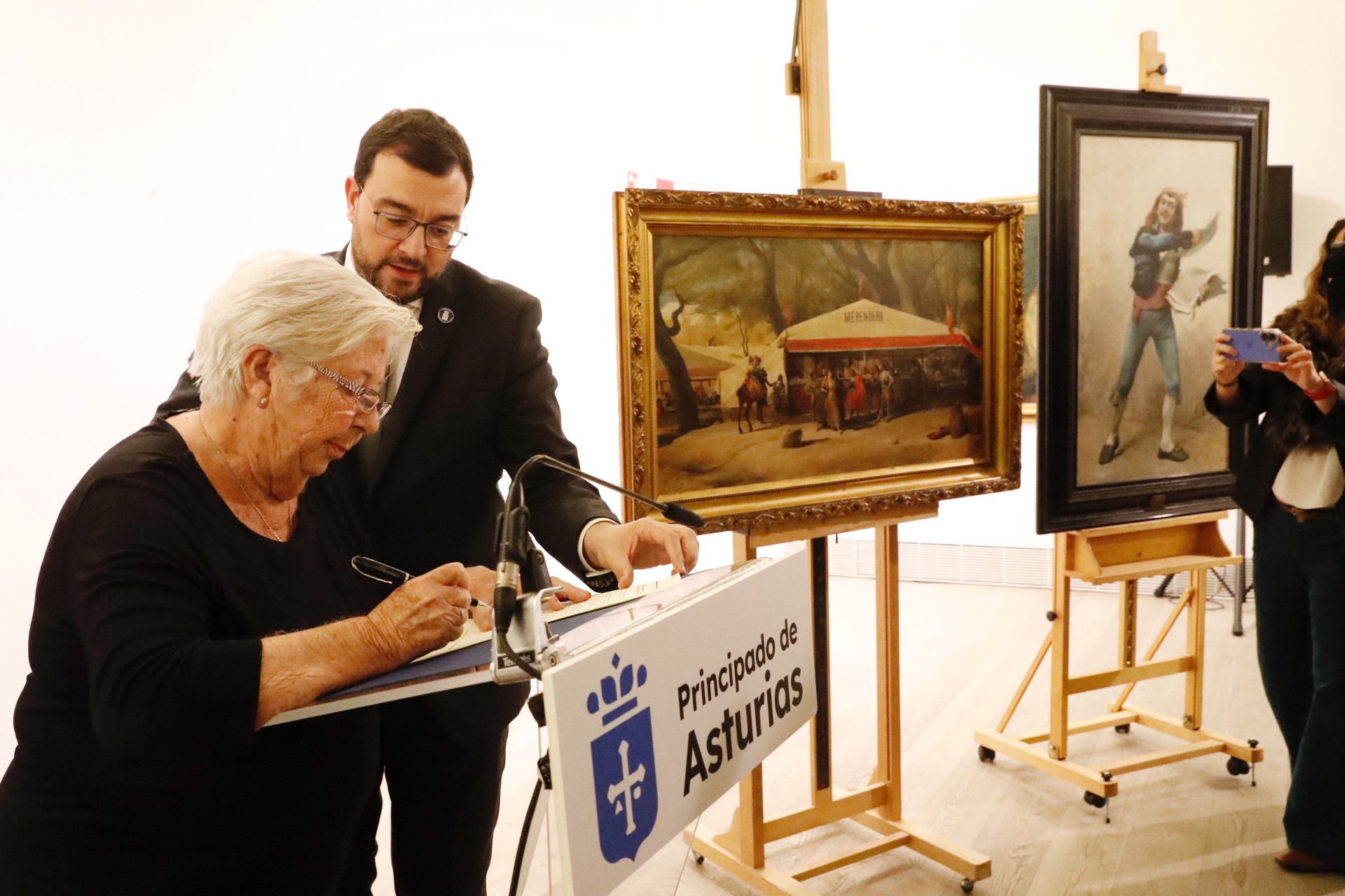 El presidente del Principado, Adrián Barbón, ha encabezado el acto de entrega, celebrado en el Museo de Bellas Artes, y en el que ha participado una amplia representación de familiares del exalcalde, legítimos propietarios de las obras. Entre ellos, han asistido sus nietos Francisca y Pedro Rico González.