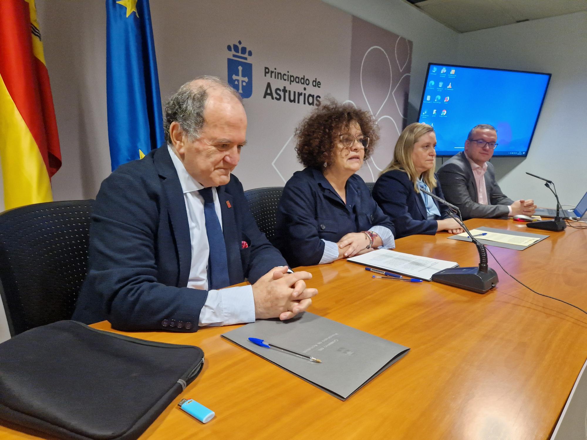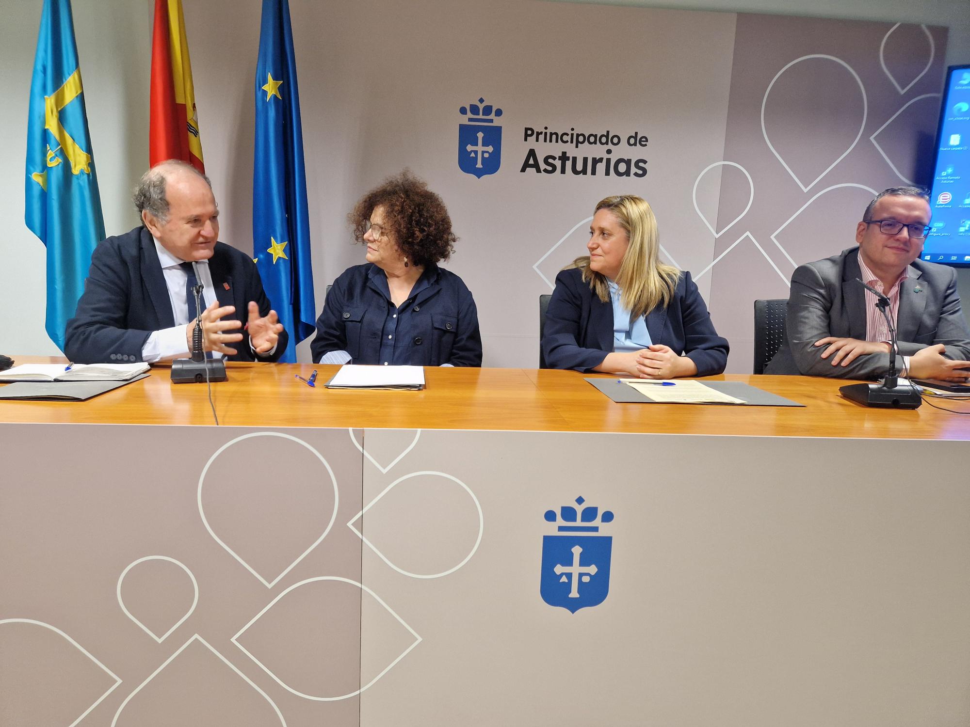La titular de Derechos Sociales y Bienestar, Marta del Arco, la gerente del ERA, Nerea Monroy, y el presidente de la Fundación Ópera de Oviedo, Juan Carlos Rodríguez-Ovejero, han firmado hoy un convenio de colaboración para el inicio del programa.