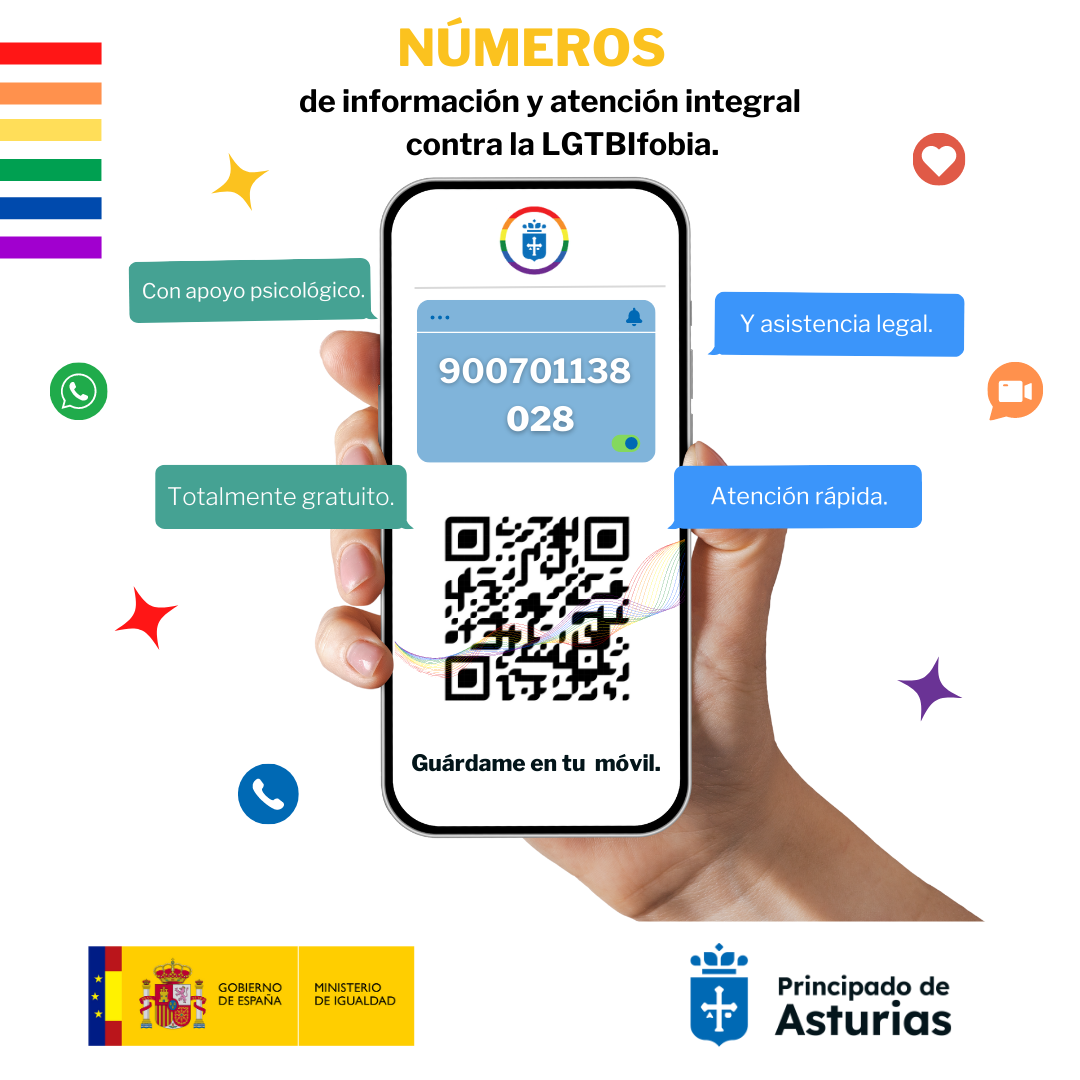 Asturias dispone además del whatsapp 621052483 que presta ayuda profesional, rápida y cercana a las personas víctimas de algún incidente, agresión o situación de discriminación, a la vez que atiende dudas para discernir si se ha sido víctima de un delito de odio.
