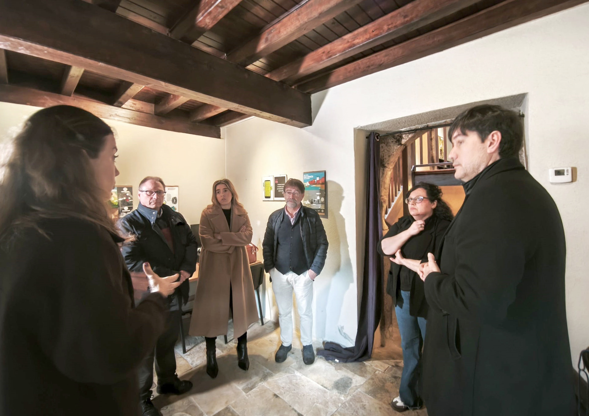 * En la imagen, el consejero de Ciencia, Borja Sánchez, (centro); la directora del Sepepa, Begoña López, y el alcalde de Cabrales, José Sánchez, conversan con una técnica del centro.