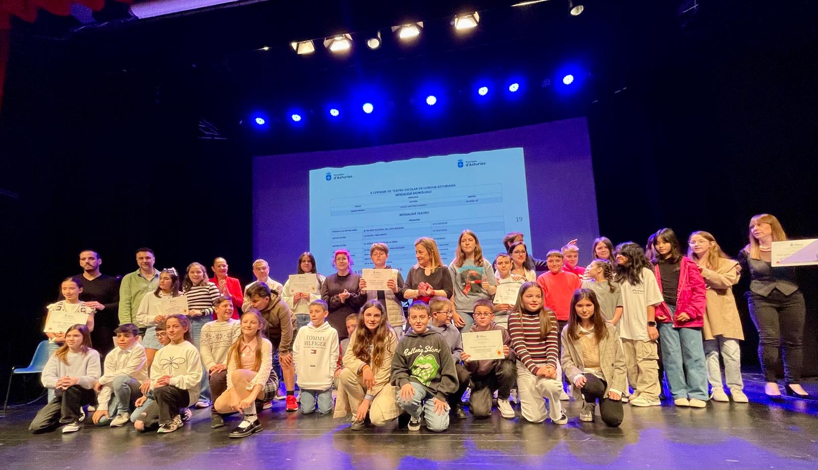 Espina ha concluido con otra invitación al alumnado: “A que sigáis esforzándovos nel apredimientu de les nuestres llingües y también nes demás materies que formen parte del vuestru cullículu” y leyendo el comienzo del libro Yo, la to llingua, del escritor Damián Barreiro, donde se advierte de que la supervivencia del asturiano está en manos de la propia población: “Asturianes y asturianos, vais ser quien decidan qué va a ser de la mio vida, si vais siguir usándome mesmo pa falar que pa escribir o voi tener que dormir yá pa siempre”.