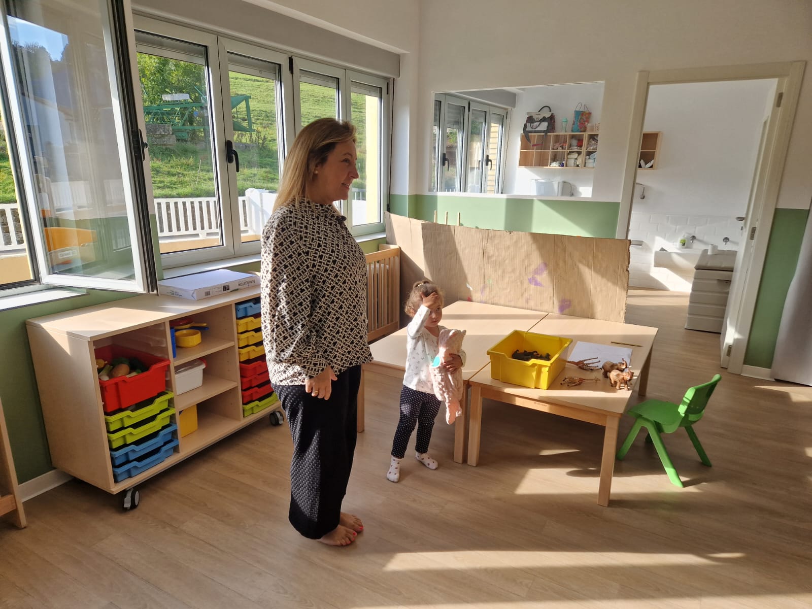Con esta visita, la consejera ha comprobado sobre el terreno cómo el proyecto de Les Escuelines/As Escolías comienza a hacerse realidad y supone un beneficio para el desarrollo temprano de los niños y niñas menores de 3 años. Espina ha podido conversar con una educadora de Alicante, que ha optado a una plaza en la escuelina de Panes animada por las singularidades de este proyecto pionero en España.
