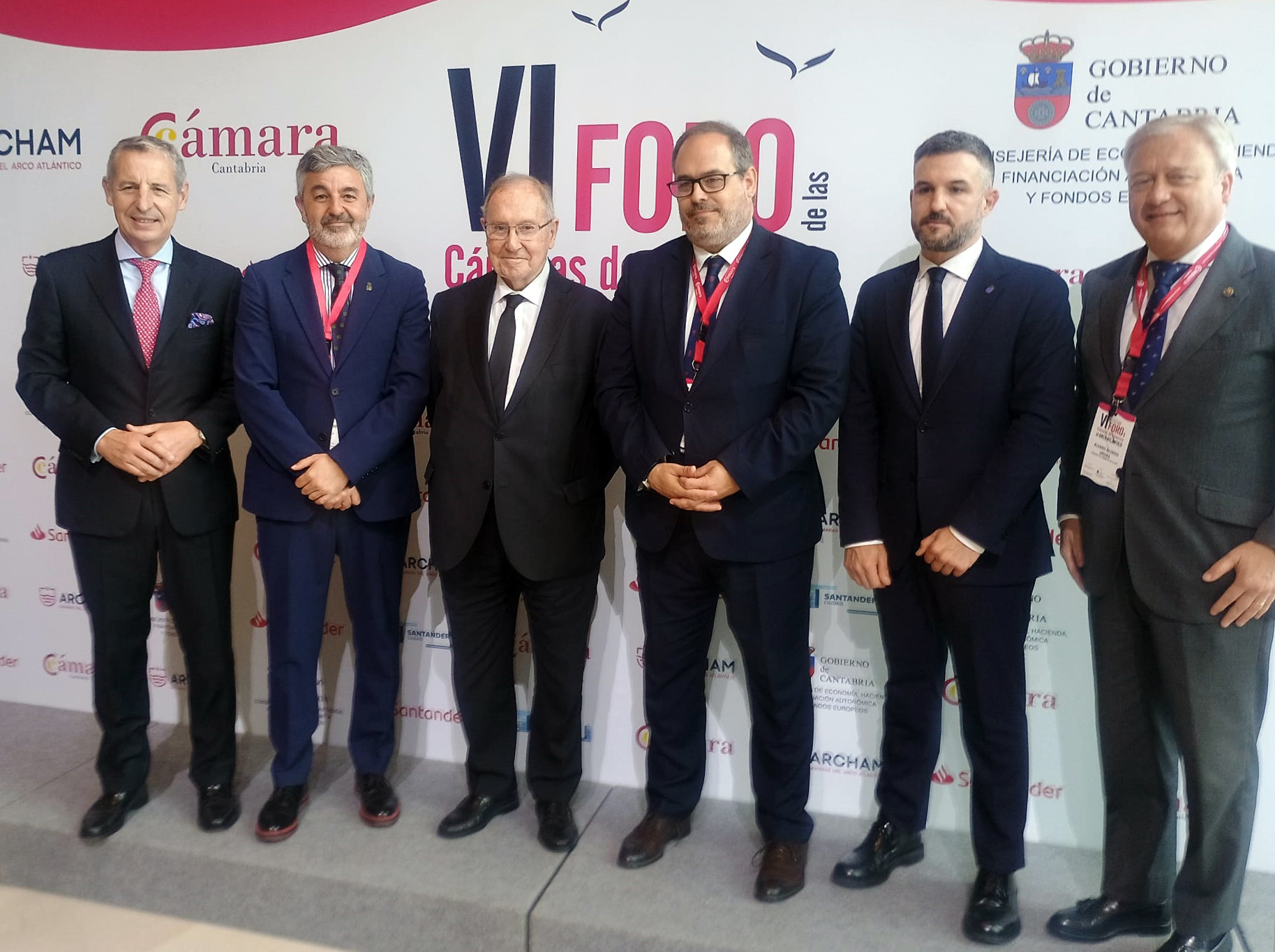 * En la imagen, el consejero de Movilidad, Alejandro Calvo; el viceconsejero de Infraestructuras, Jorge García, y la subdirectora general para la Estrategia del Modelo de Región y Atracción de Inversiones, Nuria Castaño, junto a representantes de las cámaras de Comercio de Oviedo, Gijón y Avilés en el VI Foro de las Cámaras de Comercio del Arco Atlántico celebrado hoy en Santander.