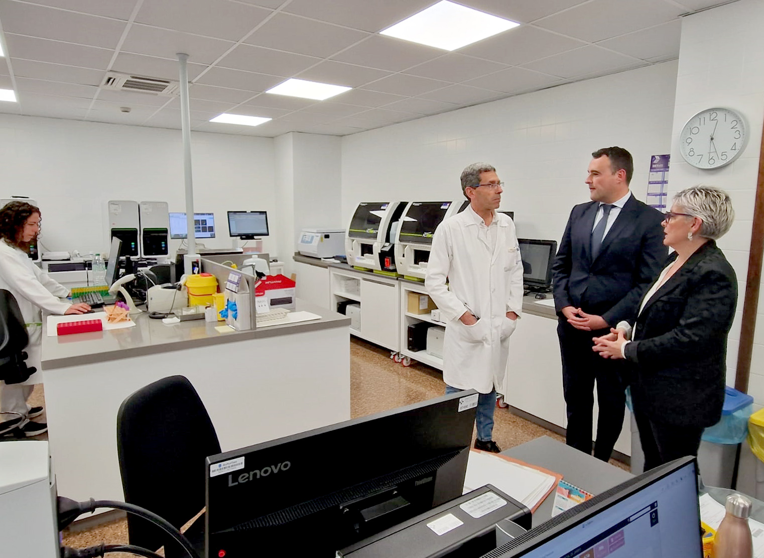 También se renovó el laboratorio de microbiología, al que se han incorporado dos equipos diagnósticos de última generación por valor de 160.000 euros. Uno de los dispositivos permite diagnosticar meningoencefalitis mediante PCR, de modo que se evita el envío de muestras al HUCA y se reducen los tiempos de respuesta. El segundo aparato facilita una identificación más rápida y precisa de patógenos relevantes en las muestras clínicas.
