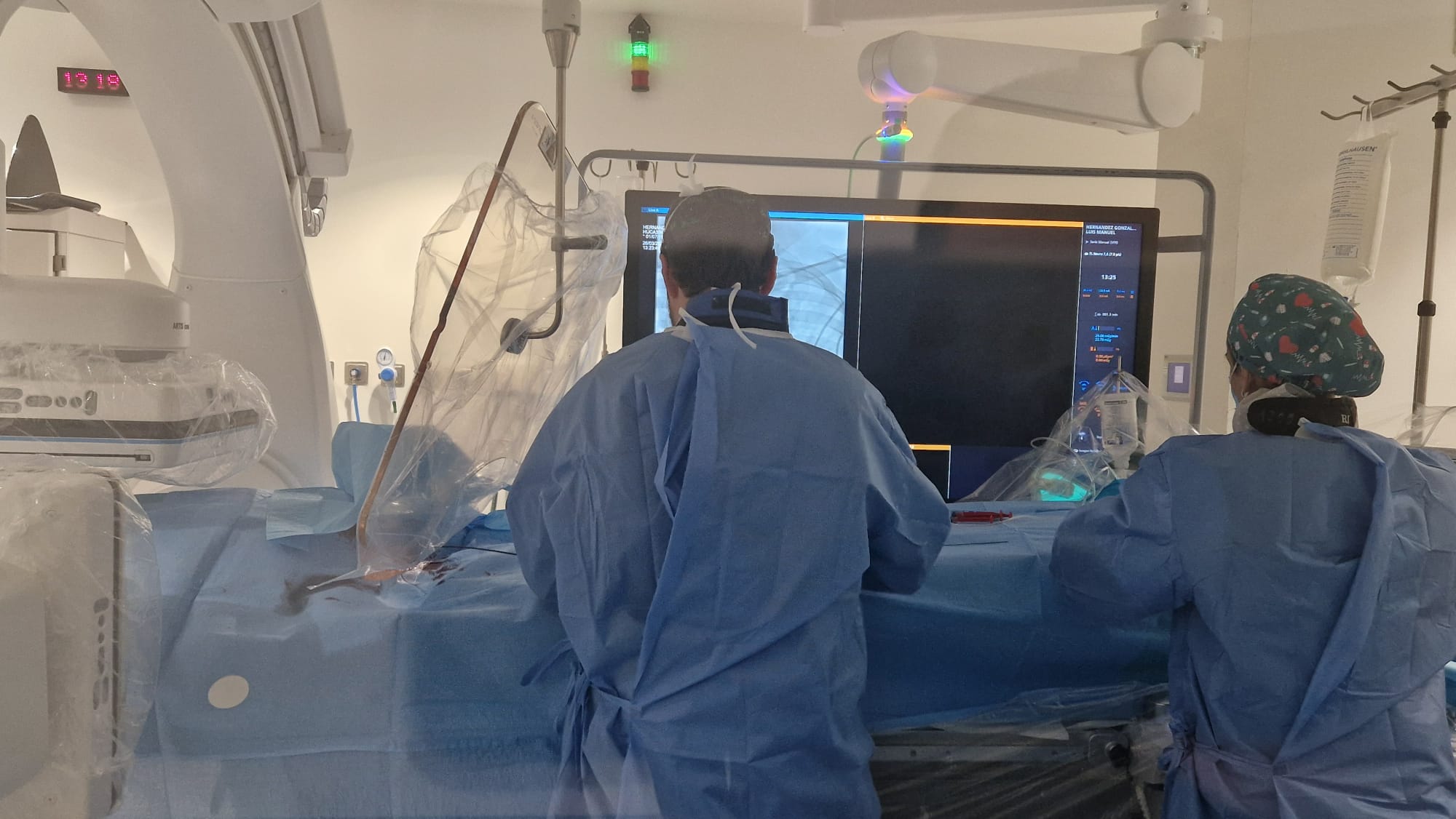 En los últimos años se ha demostrado que esta patología está relacionada con el desarrollo progresivo de pequeños vasos en las meninges, en el contexto de un proceso inflamatorio local. Para abordar este problema, el HUCA ha diseñado un protocolo que implica a profesionales de Neurocirugía y Neurorradiología Intervencionista y que combina la intervención quirúrgica con la embolización de la arteria meníngea media, un procedimiento mínimamente invasivo que ocluye pequeños vasos implicados en la inflamación que favorece la persistencia del hematoma. La técnica se realiza mediante cateterismo radial y bajo sedación consciente, sin prolongar la estancia hospitalaria.