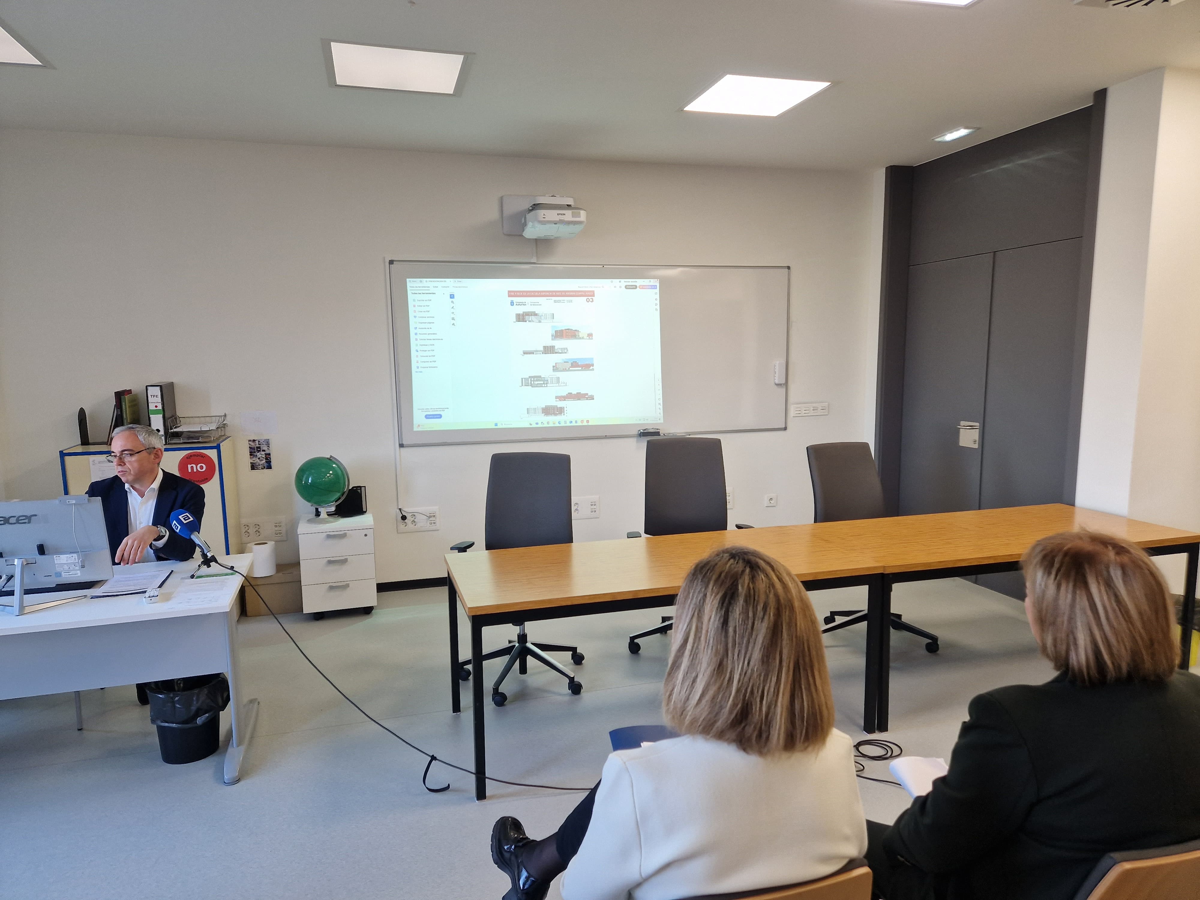 La consejera de Educación, Lydia Espina, y el director general de Infraestructuras y Tecnologías Educativas, Julio Vallaure, han presentado el proyecto, acompañados por la alcaldesa de Avilés, Mariví Monteserín, y de varios concejales de la corporación municipal.