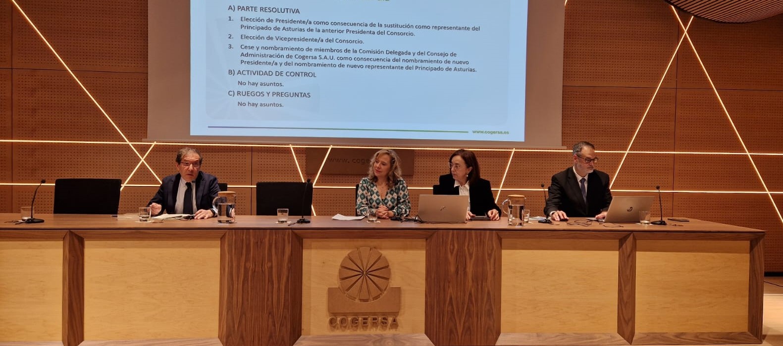 *Pie de foto: el secretario de Cogersa, Rafale Fueyo; la consejera de Transición Ecológica, Industria y Comercio, Belarmina Díaz, nueva presidenta de Cogersa: la gerente de la entidad, Paz Orviz, y el interventor del organismo, Enrique Céspedes.