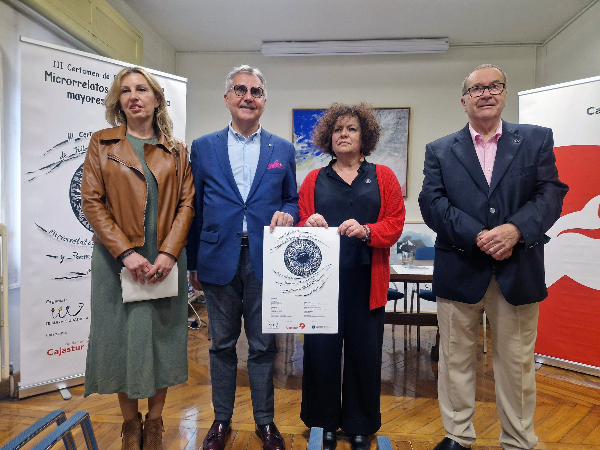 * En la imagen, de izquierda a derecha,  Virginia Gil, coordinadora del certamen; Carlos Siñeriz, director de la Fundación Cajastur; Marta del Arco, consejera de Derechos Sociales y Bienestar; y Pedro Sánchez Lazo, presidente de Tribuna Ciudadana.