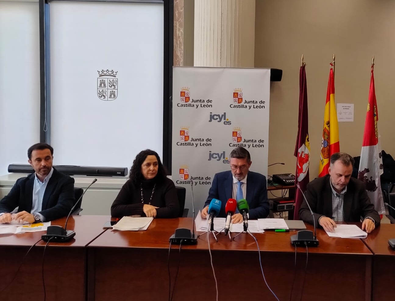 El director general del Medio Natural y Planificación Rural, David Villar, junto con sus homólogos de Castilla y León, Cantabria y Galicia, ha presentado hoy en León el censo de osos pardos en la cordillera Cantábrica. La estimación poblacional, realizada mediante técnicas genómicas, arroja un resultado de 370 ejemplares (210 machos y 160 hembras), distribuidos entre la subpoblación occidental (250) y la oriental (120).