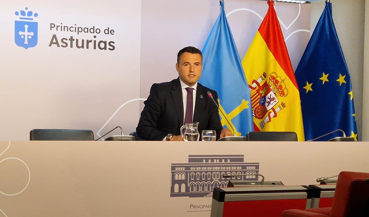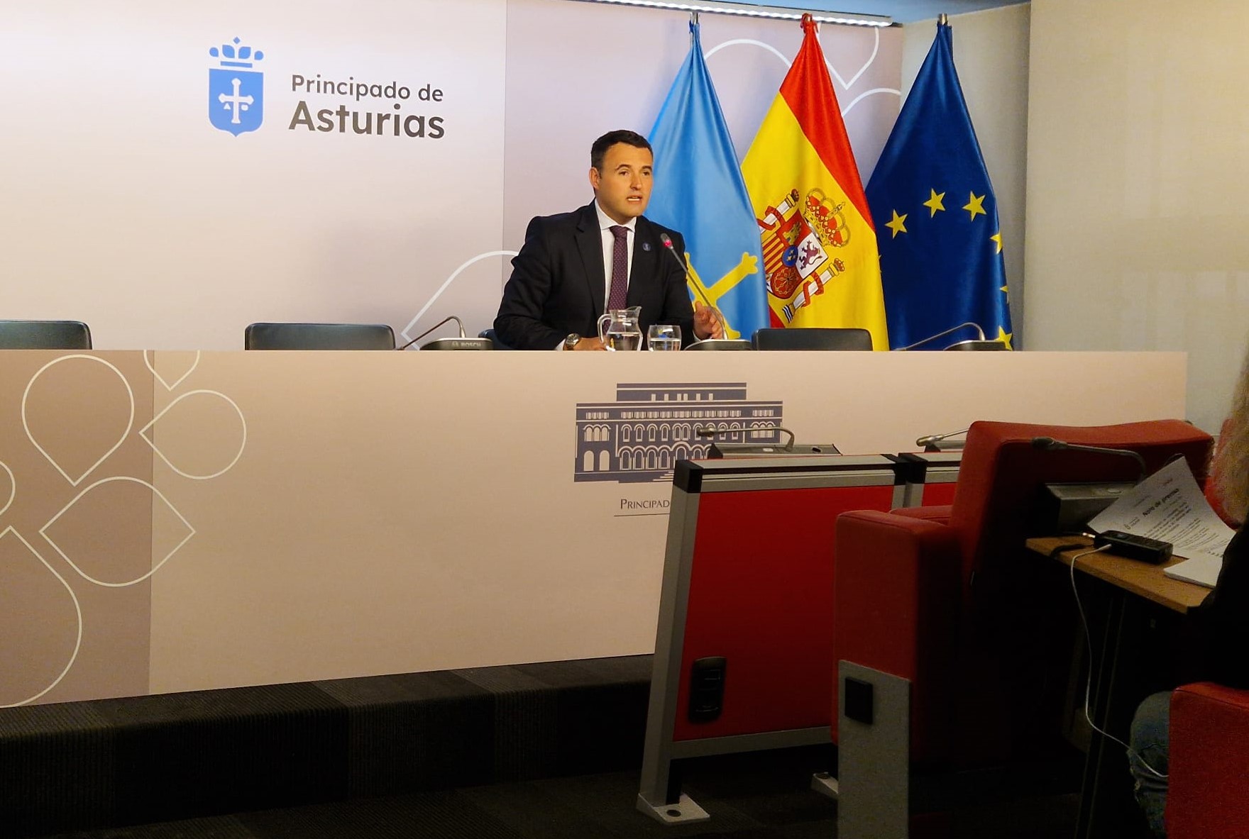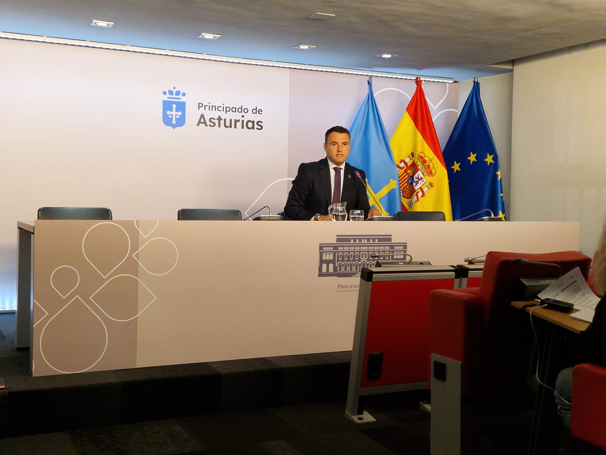 El consejero de Hacienda, Justicia, y Asuntos Europeos y portavoz del Gobierno de Asturias, Guillermo Peláez, informa en rueda de prensa de los acuerdos adoptados en el Consejo de Gobierno.
