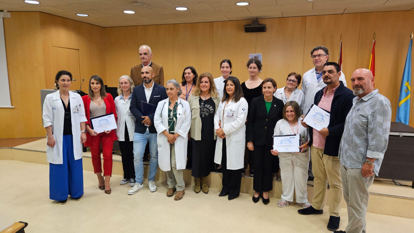 Premio Continuidad asistencial: Plan de mejora de las unidades administrativas de Atención Primaria del área sanitaria V. Sus autores son Clara Isabel Tuñón, José Francisco Camarzana, Josefina Álvarez, Luis Ángel Andión, Eusebio de Lucas, Manuel Díaz, Concepción Fernández, Natalia Iglesias, Eugenio Losada, Mar Morán, Francisco Otero, María Josefa Queipo, Marta Rodríguez, Lucía Rubio, Amparo Bárbara Rodríguez, Margarita Palacio, María José Gómez, Raquel Casas, Amalia Franco y Óscar Veiras, jefes administrativos de Atención Primaria y Unidad de Calidad.