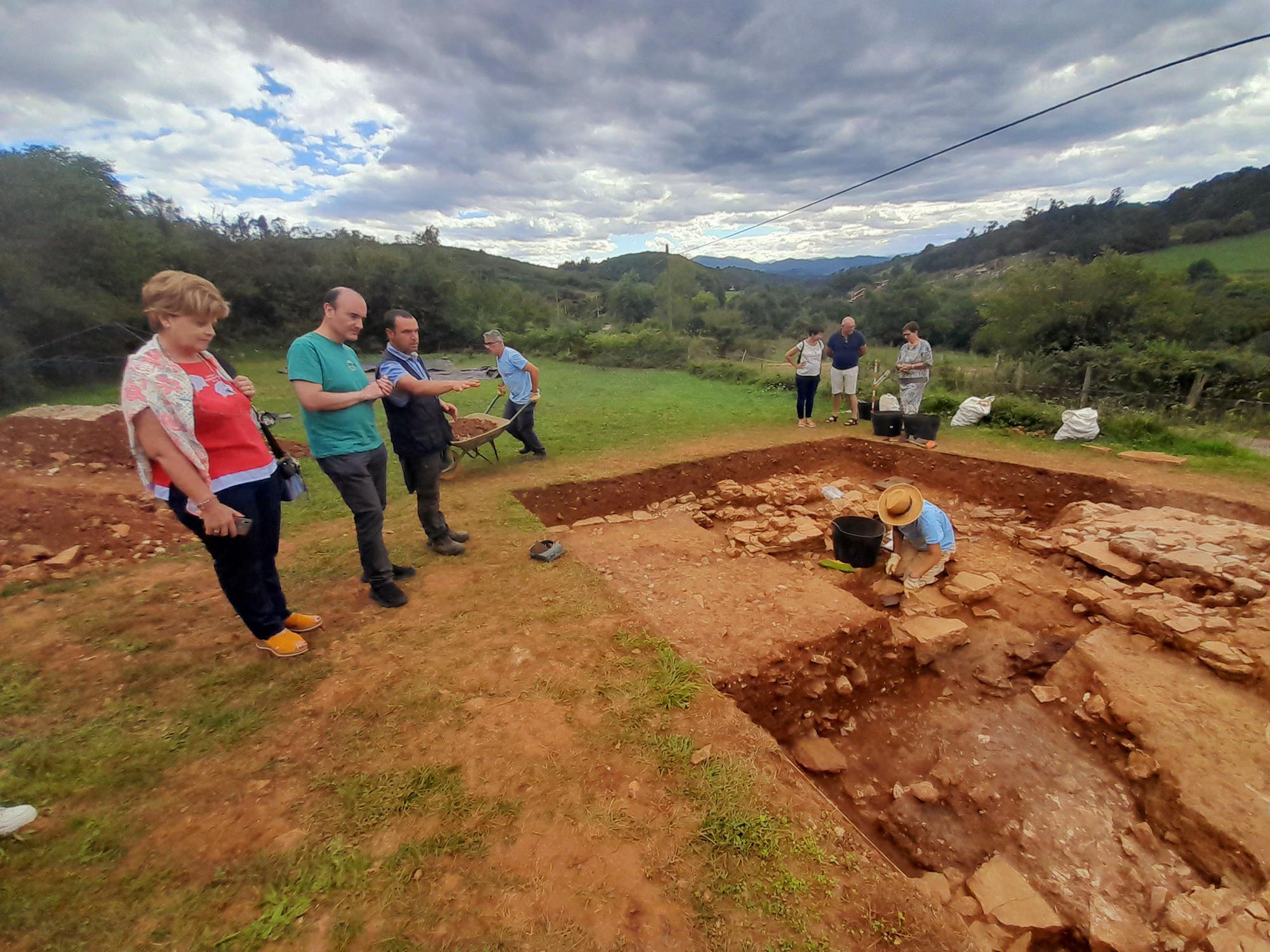 El director general de Cultura y Patrimonio, Pablo León, ha visitado hoy el yacimiento con la alcaldesa de Las Regueras, María Isabel Méndez, y los responsables de la excavación para comprobar el avance de la intervención. El descubrimiento de este horno, que también habría servido para fundir objetos de bronce, tiene relevancia arqueológica ya que existen vestigios similares pertenecientes a otros periodos romanos o medievales, pero no de la época en que se data éste, de finales del siglo V al siglo VII.