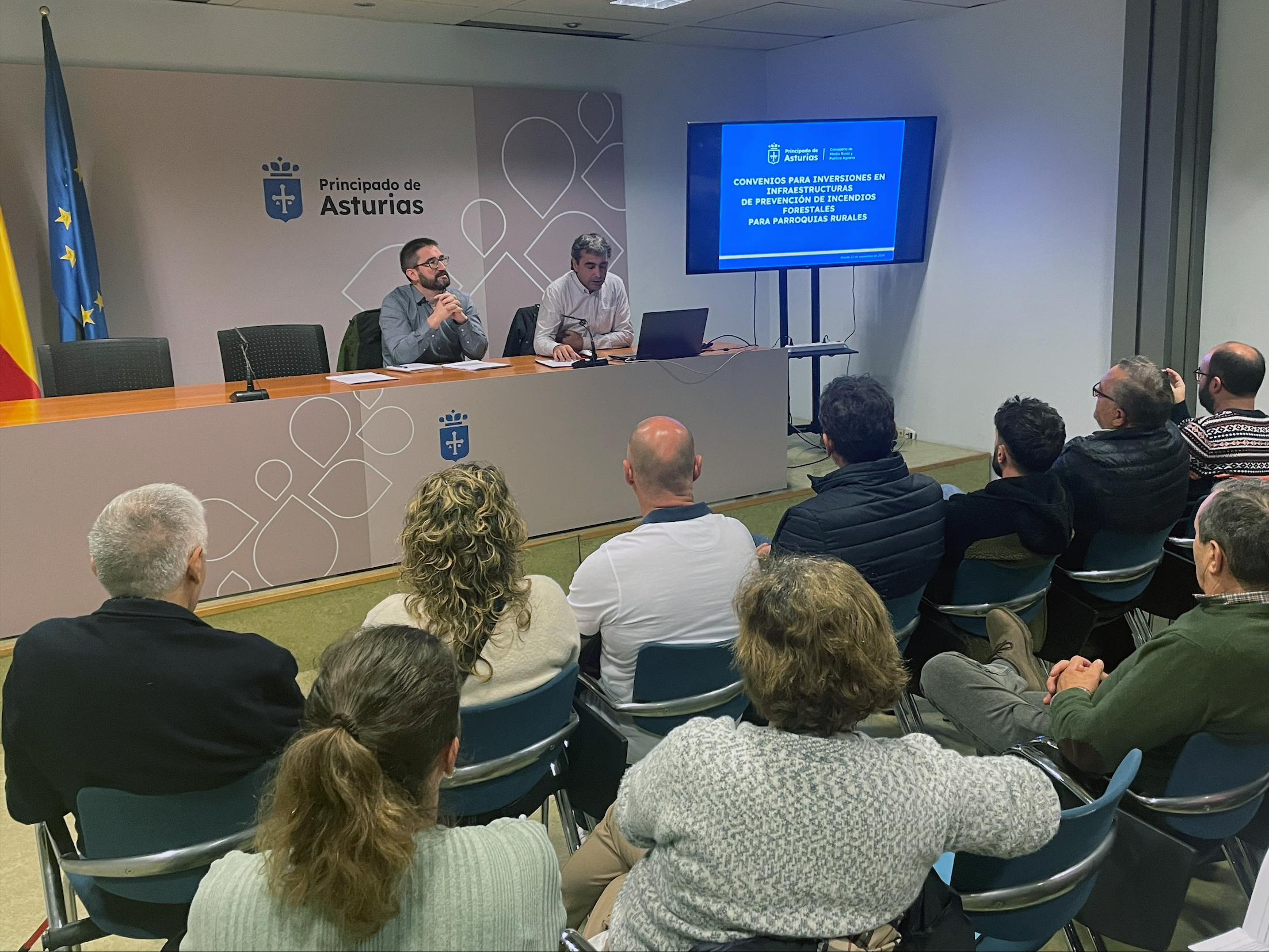 El director general de Gestión Forestal, Javier Vigil, ha presentado hoy a los representantes de las parroquias rurales este plan, que cuenta con financiación del Fondo Europeo Agrario de Desarrollo Rural (Feader).