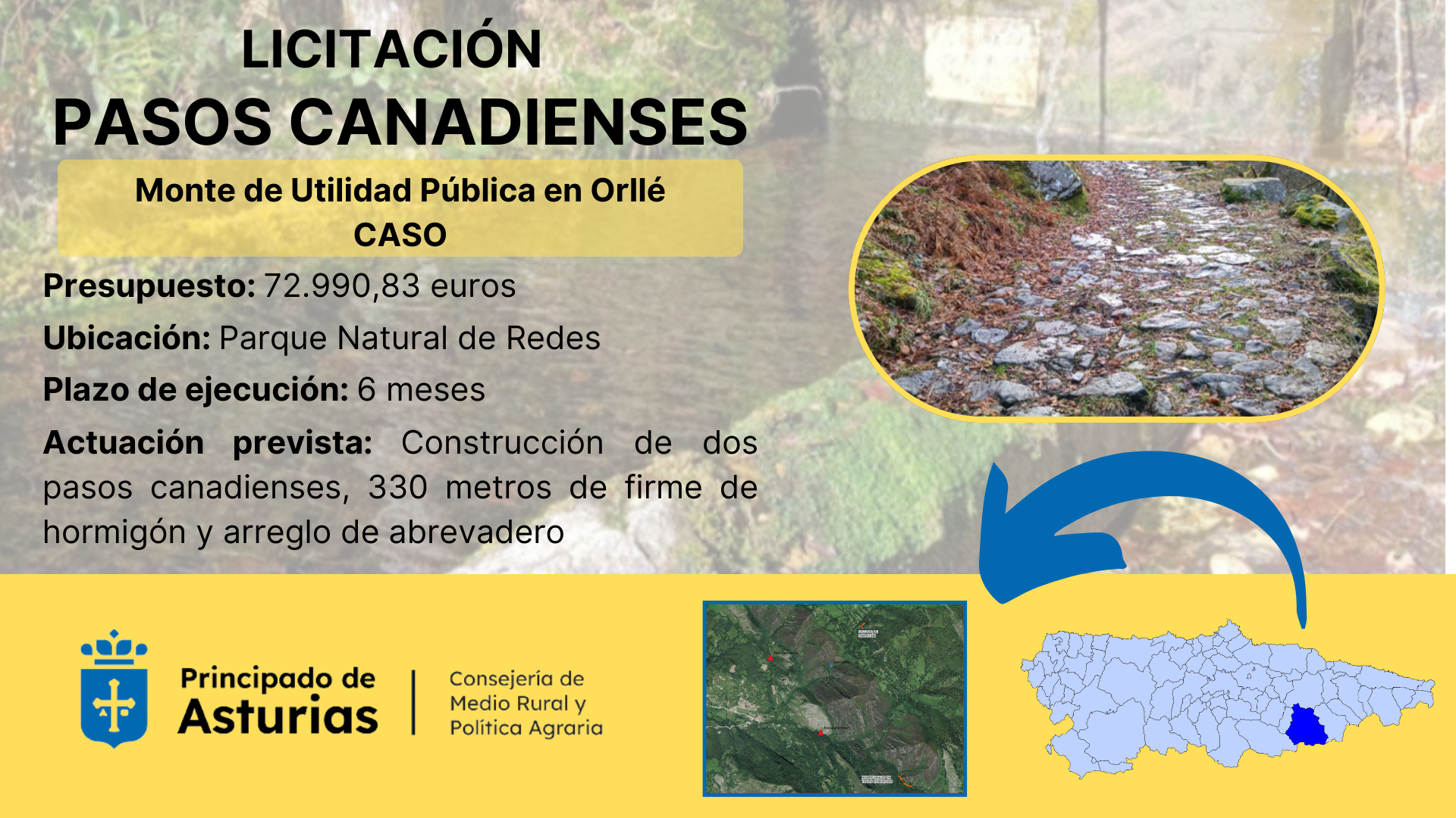 La Consejería de Medio Rural y Política Agraria ha sacado a licitación por 72.990,83 euros las obras de construcción de dos pasos canadienses y de mejora de las infraestructuras en el monte de utilidad pública de Orllé, en Caso.