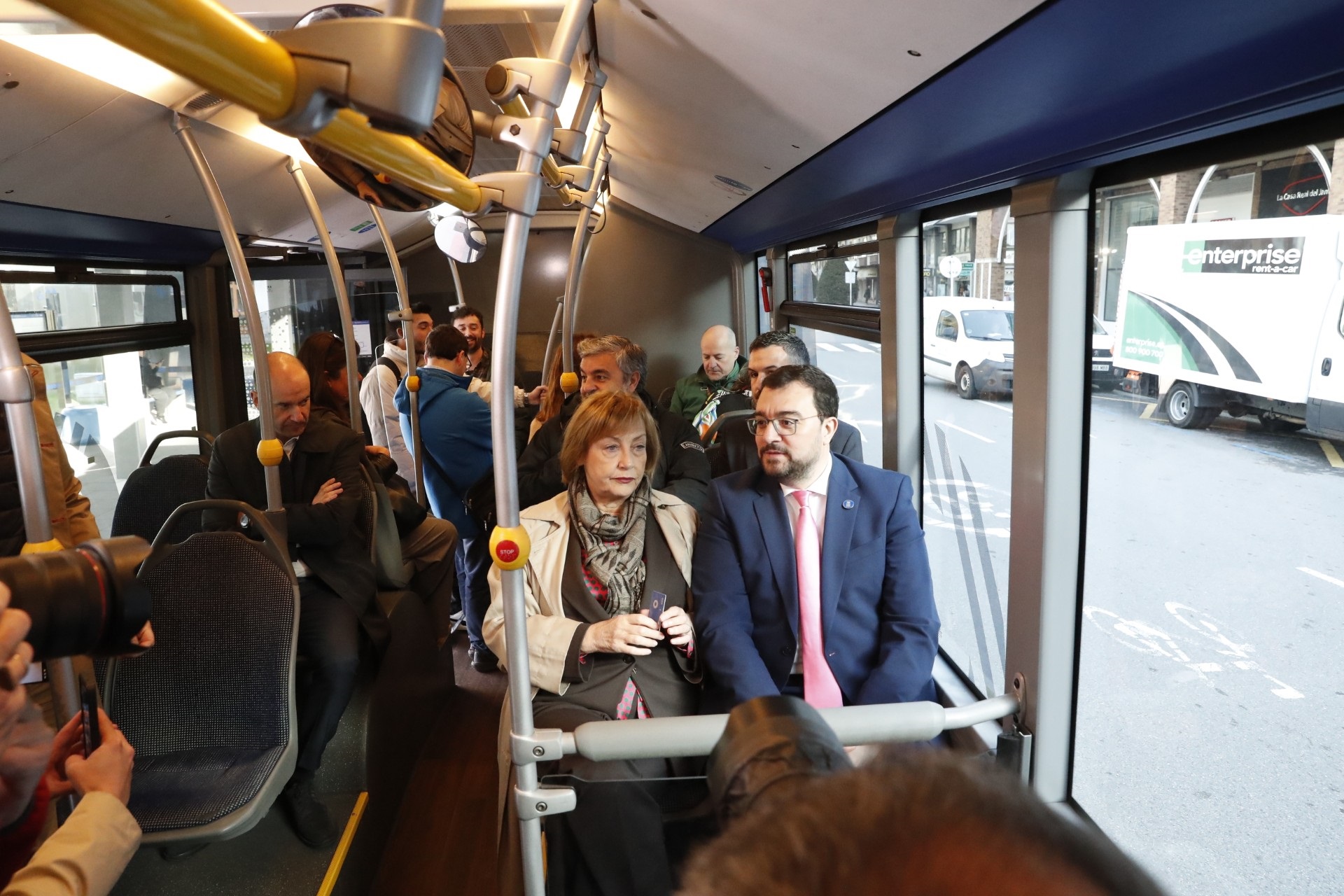 El presidente del Principado, Adrián Barbón, ha realizado esta mañana el recorrido en el autobús que cubrirá el servicio, acompañado por el consejero de Movilidad, Alejandro Calvo; los viceconsejeros de Infraestructuras y Movilidad Sostenible, Jorge García, y de Política Sanitaria, Pablo García, y la alcaldesa de Avilés, Mariví Monteserín, entre otras autoridades.