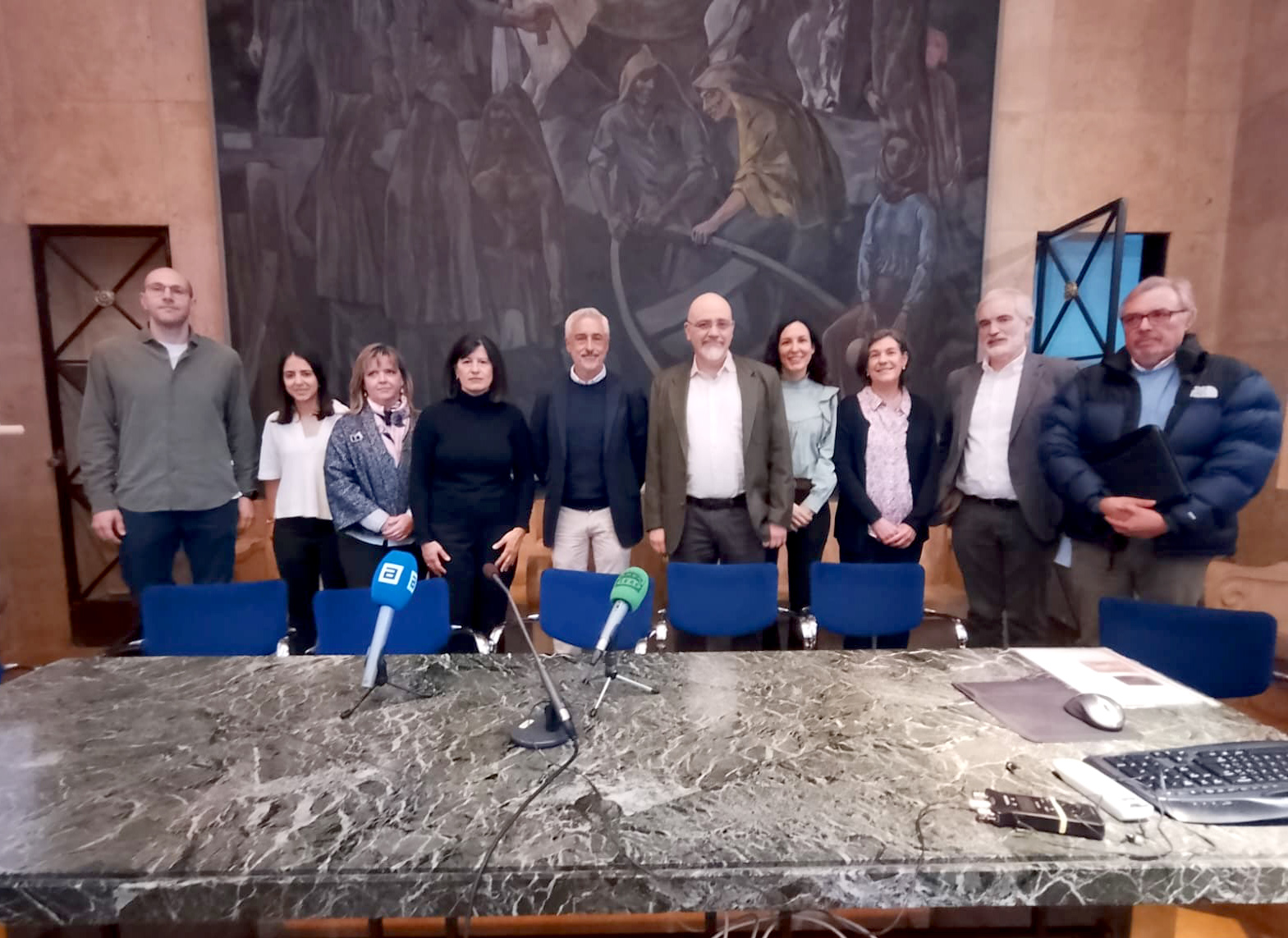 *En la imagen (de izqda. a dcha.): Antonio Adeba, cardiólogo del Hospital de Cabueñes; Carmen Merino y Susana García, nefrólogas de Cabueñes; Beatriz Díaz, jefa de sección de Insuficiencia Cardiaca del HUCA; Emilio Sánchez, director de la unidad de gestión clínica de Nefrología del HUCA; Alfonso Pobes, jefe de servicio de Nefrología de Cabueñes; Berta Vega, cardióloga de Cabueñes; Inés Moller, jefa de sección de Cardiología en el Hospital San Agustín; Aquilino Alonso, director gerente del Sespa, y José María Baltar, jefe de Nefrología en San Agustín.