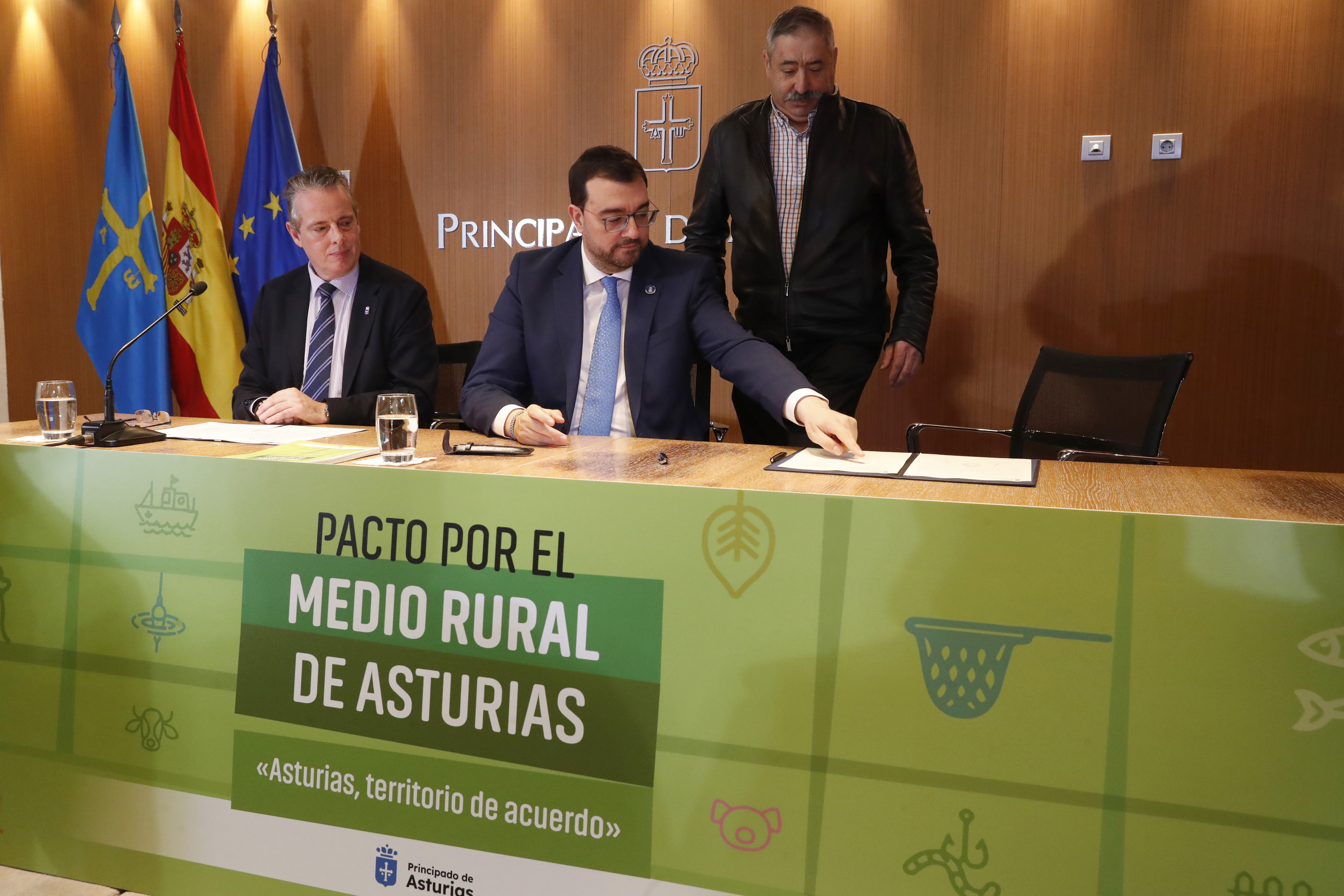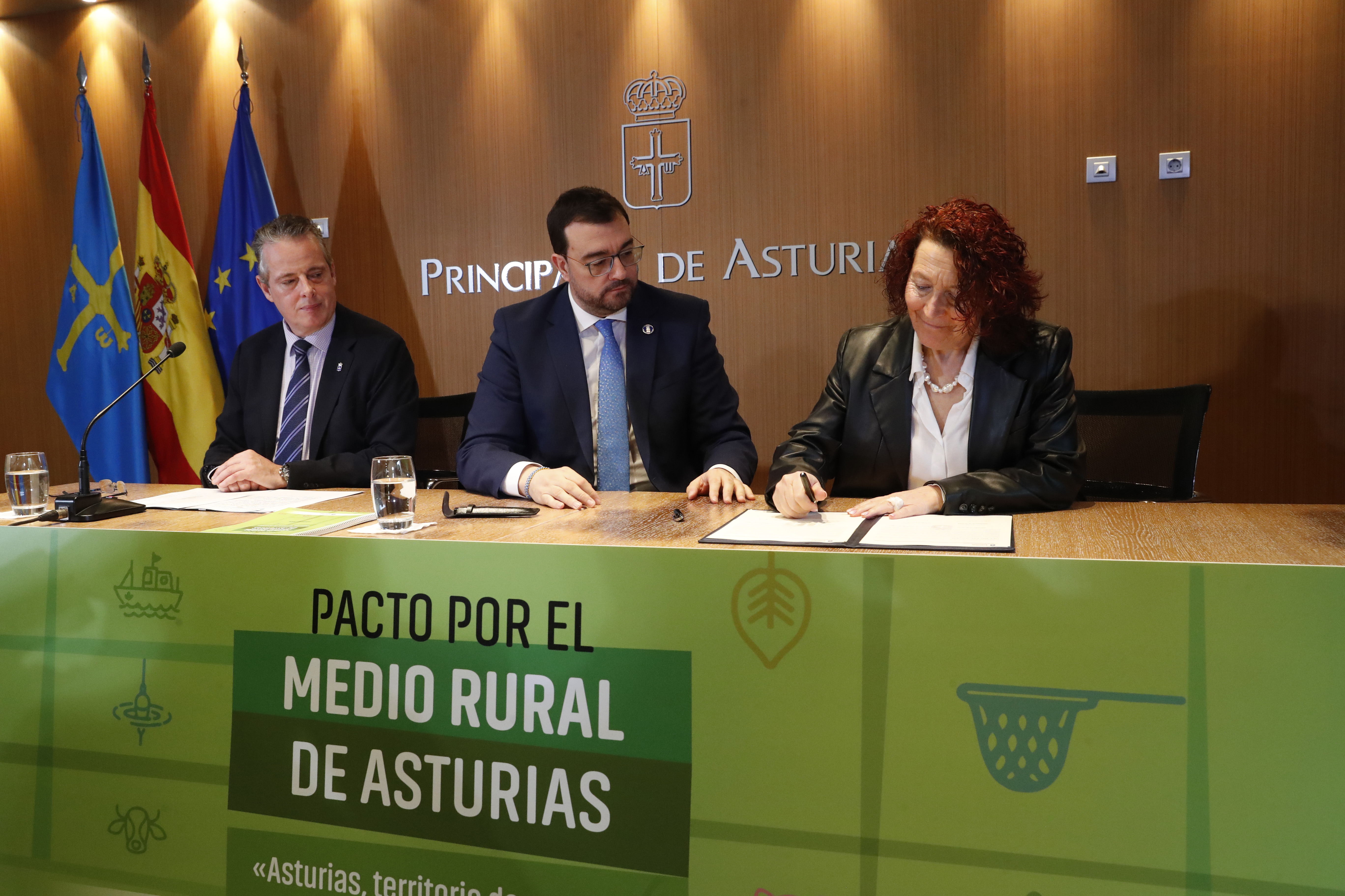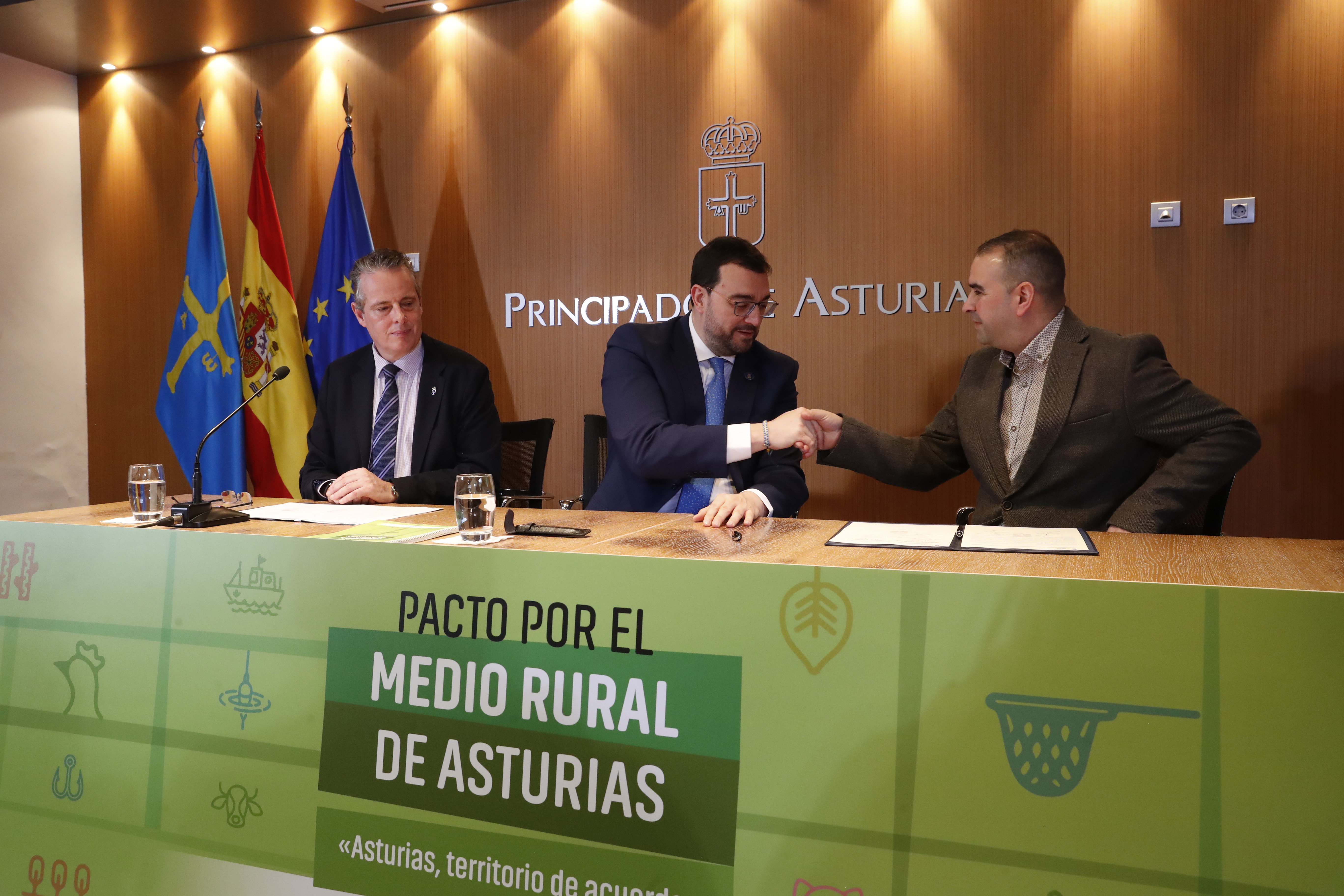 En el acto de rúbrica han participado representantes del Principado, la Federación Asturiana de Empresarios (Fade), la Universidad de Oviedo, la Federación Asturiana de Concejos (FACC), la Federación de Cofradías de Pescadores, la Red Asturiana de Desarrollo Rural (Reader), las cooperativas agroalimentarias y las organizaciones sindicales UCA, Usaga y COAG.