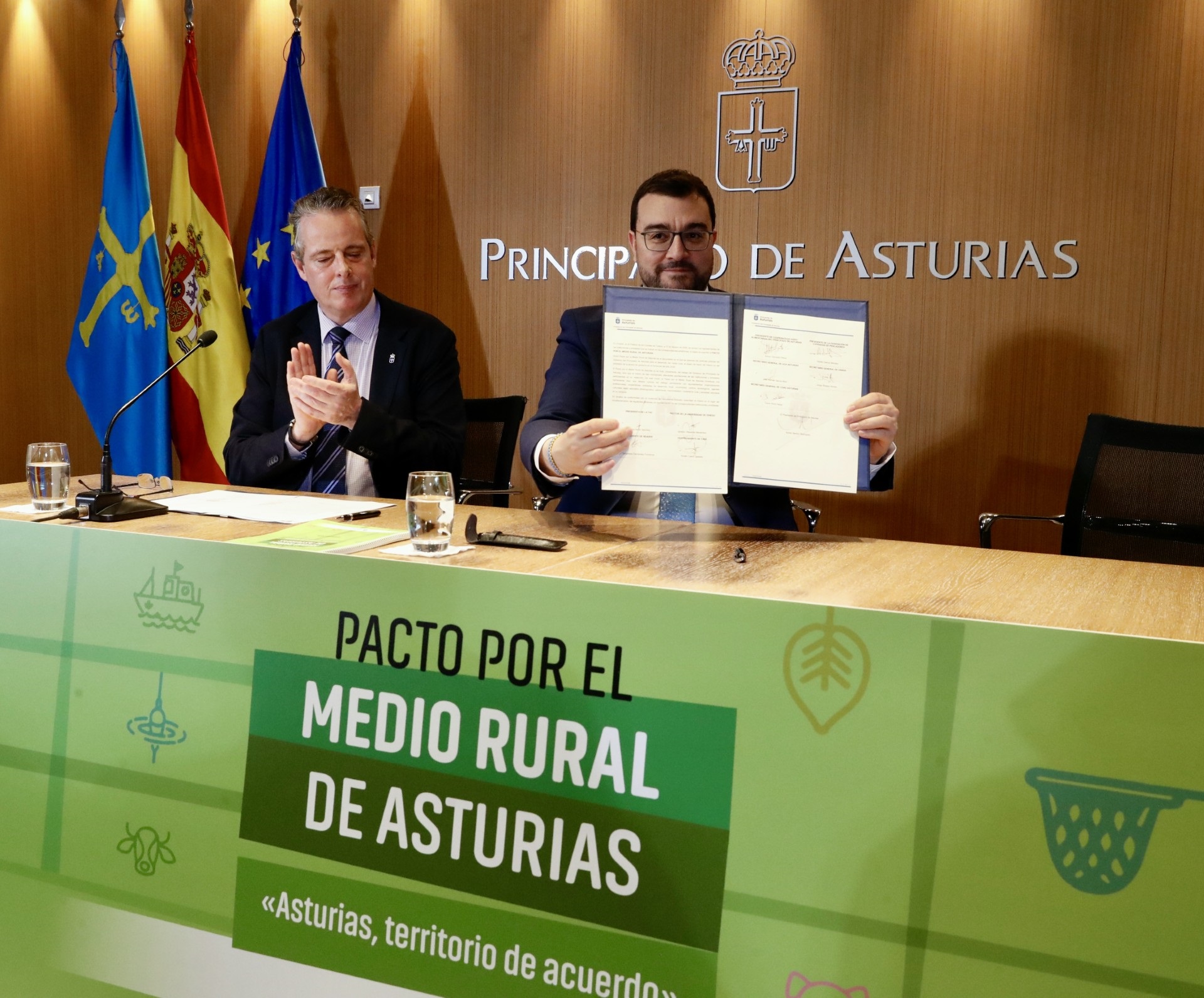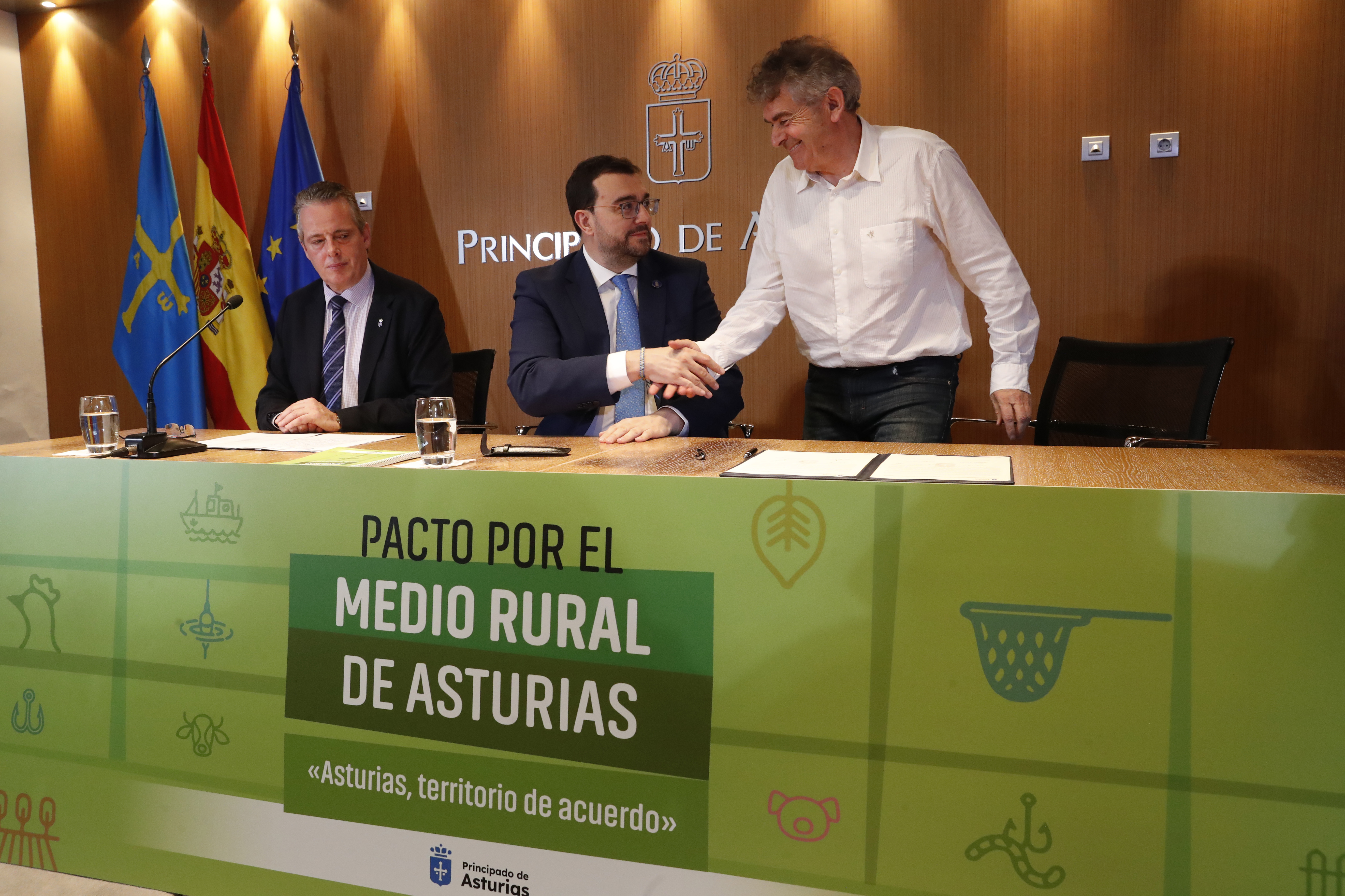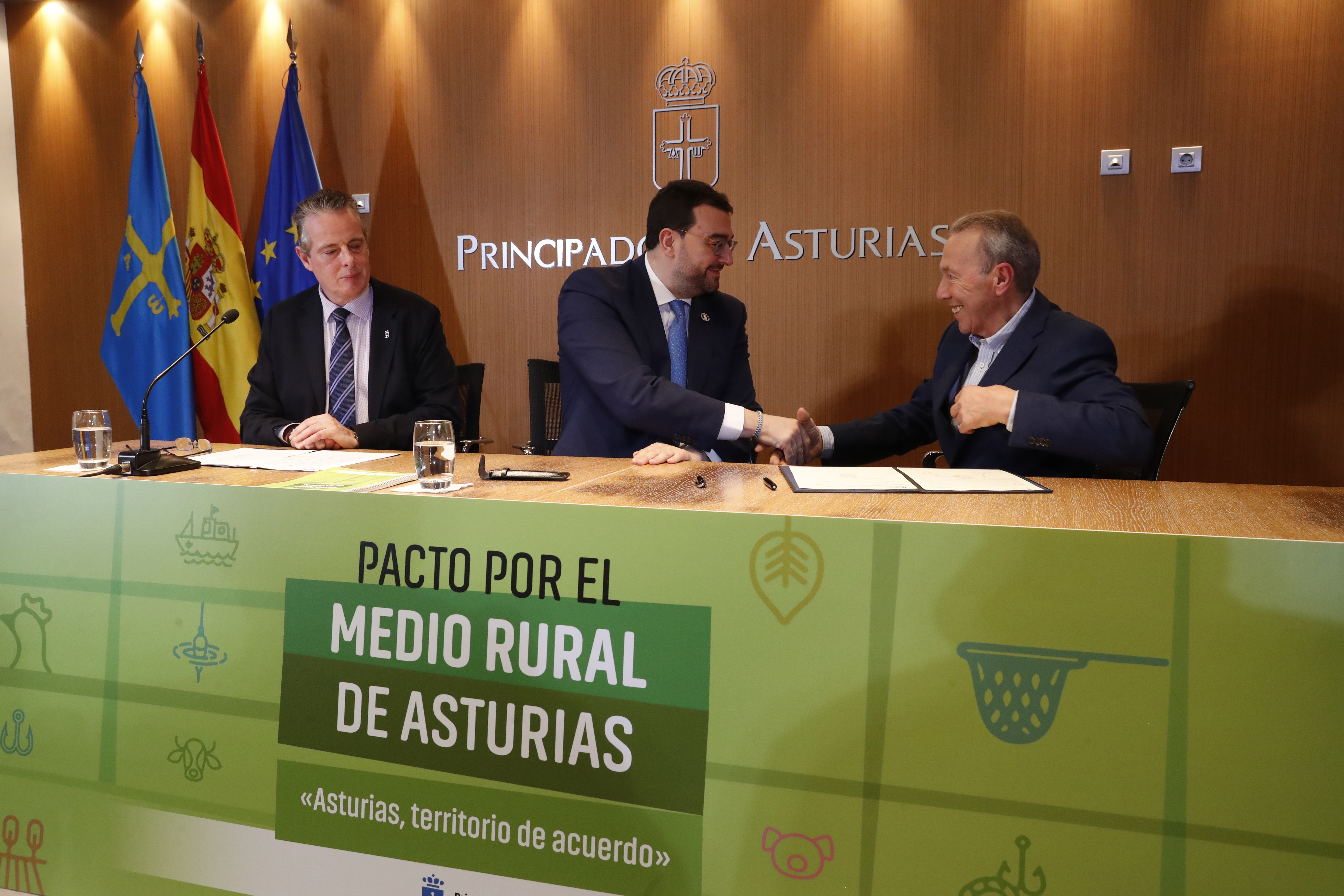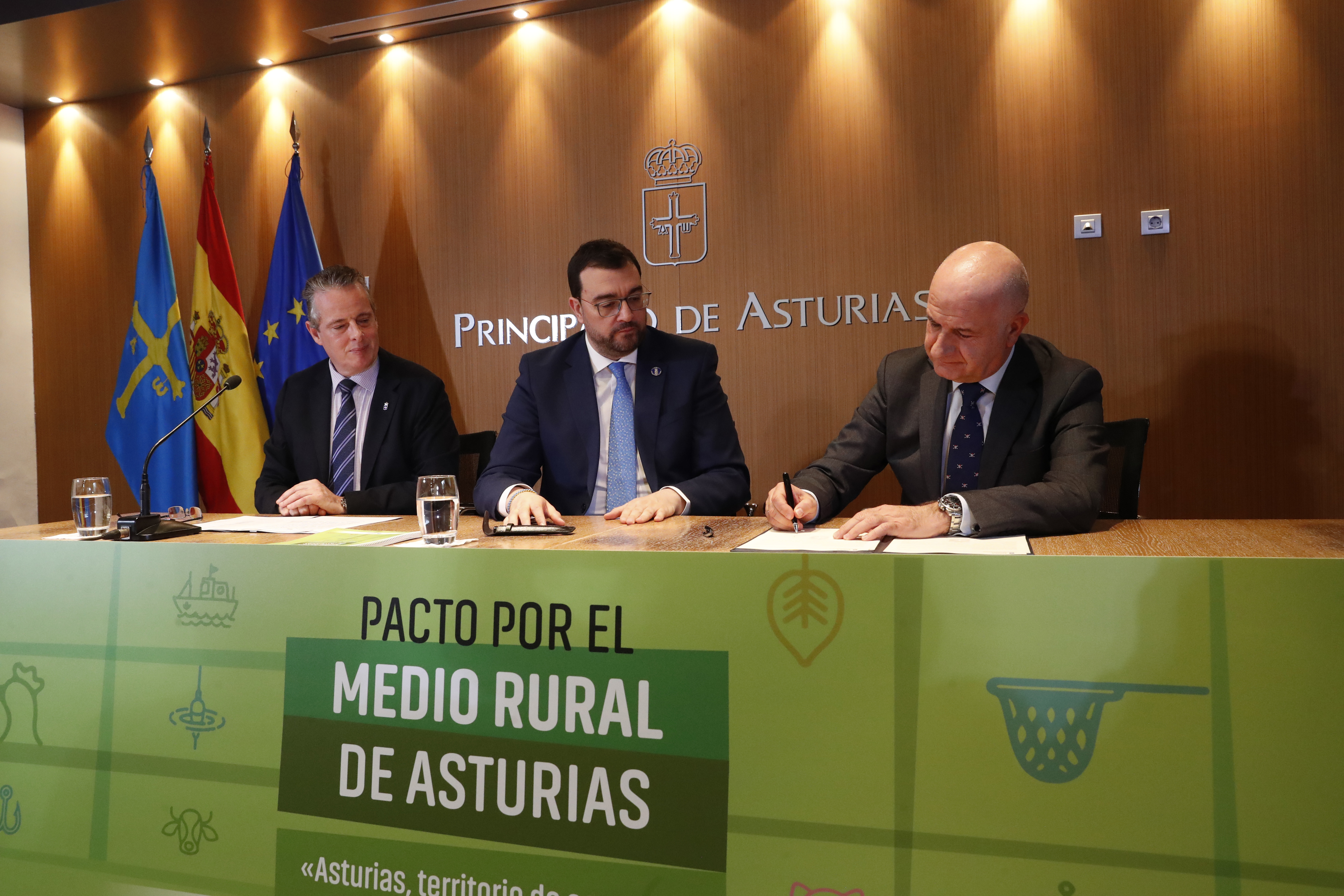 En el acto de rúbrica han participado representantes del Principado, la Federación Asturiana de Empresarios (Fade), la Universidad de Oviedo, la Federación Asturiana de Concejos (FACC), la Federación de Cofradías de Pescadores, la Red Asturiana de Desarrollo Rural (Reader), las cooperativas agroalimentarias y las organizaciones sindicales UCA, Usaga y COAG.