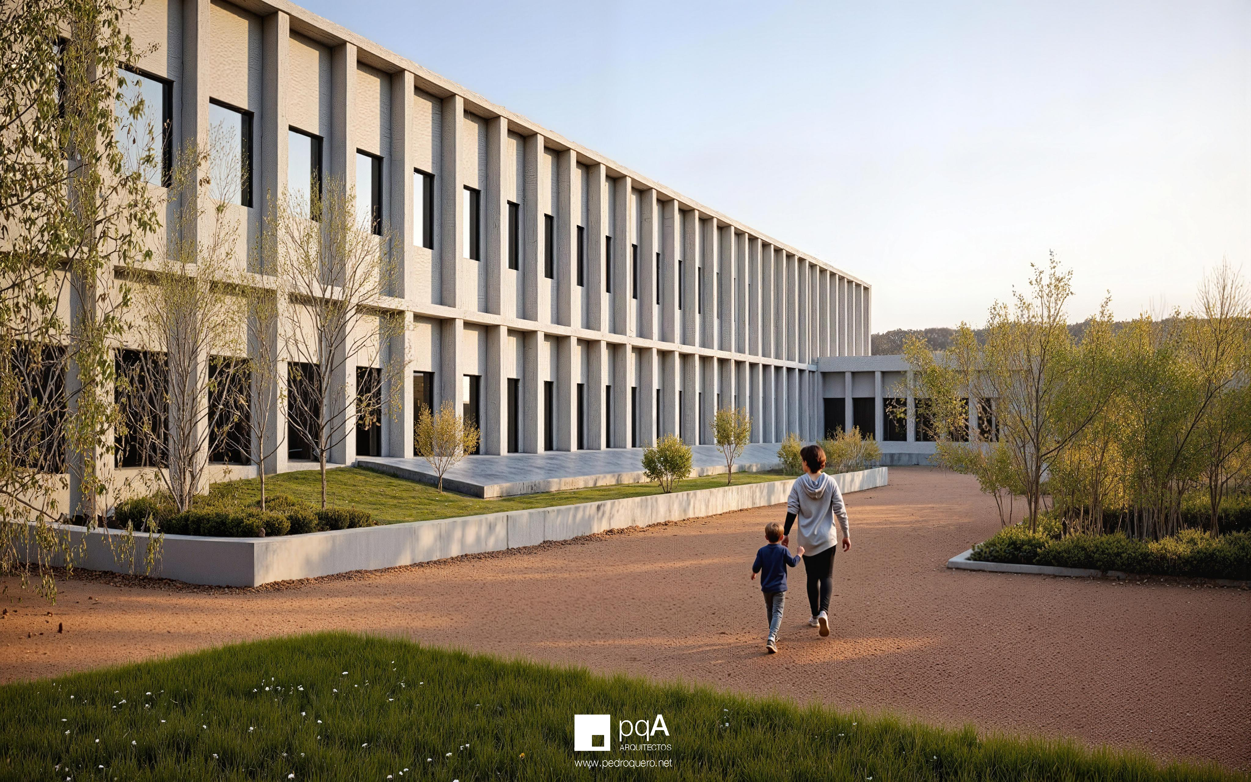 El inmueble dispondrá de 57 aulas flexibles de múltiples tamaños, además de otras tres específicas de música, estimulación sensorial y psicomotricidad. Habrá, además, 14 aseos adaptados, un salón de actos para 215 personas, patios cubiertos, pista polideportiva, biblioteca, área de cocina y dos comedores.