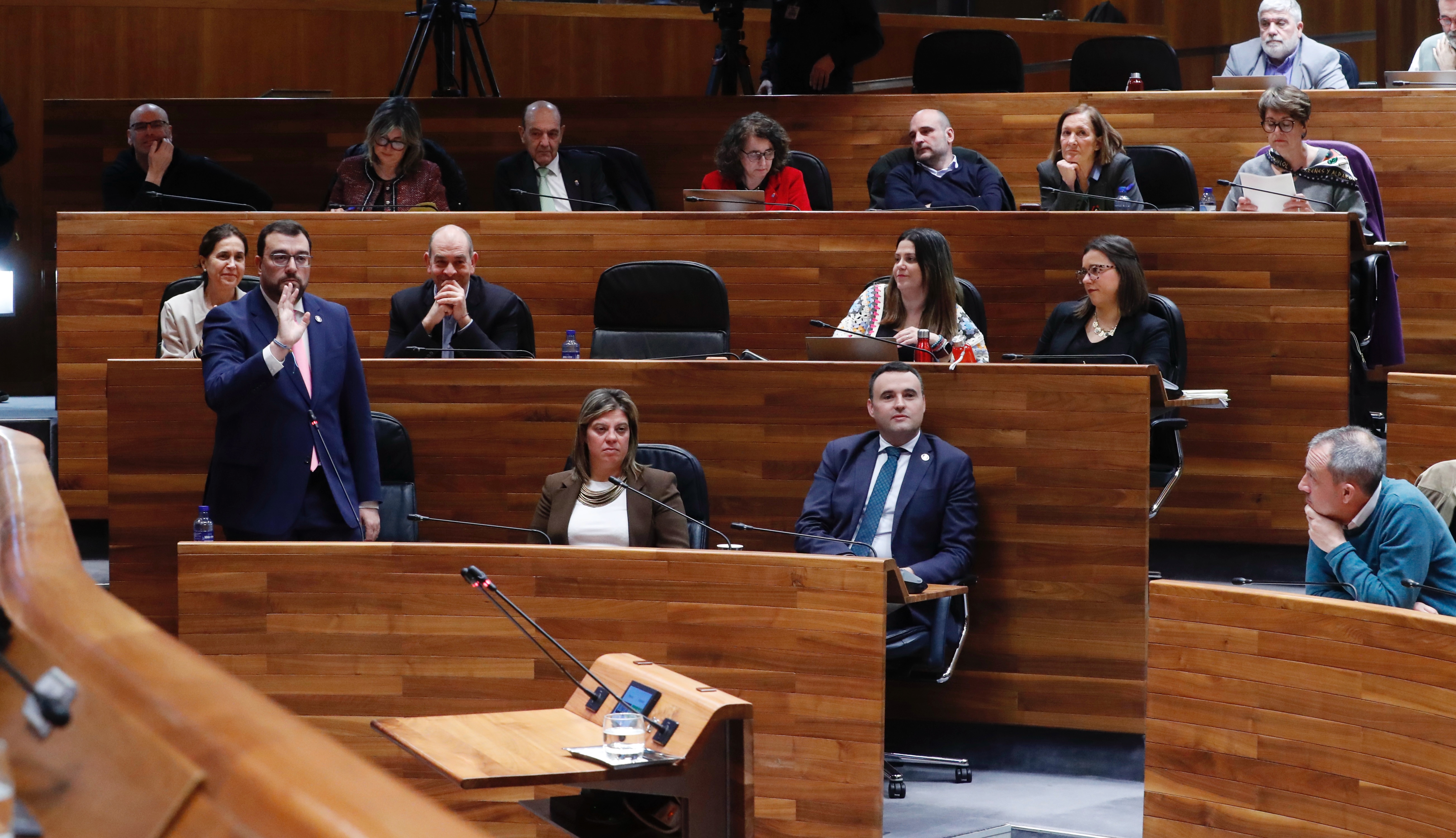 El presidente del Principado, Adrián Barbón, responde en el pleno de la Junta General a las preguntas de los grupos parlamentarios.