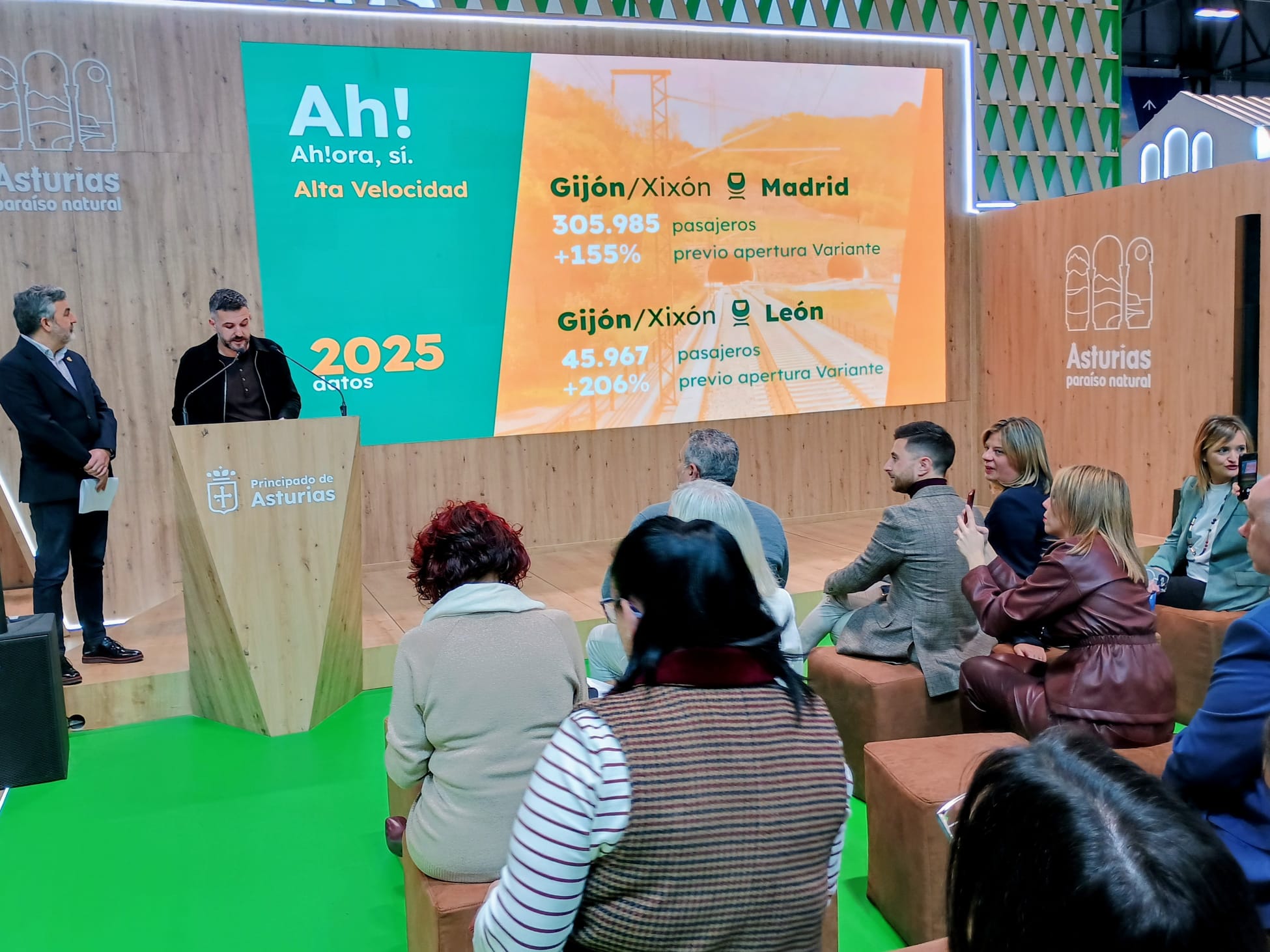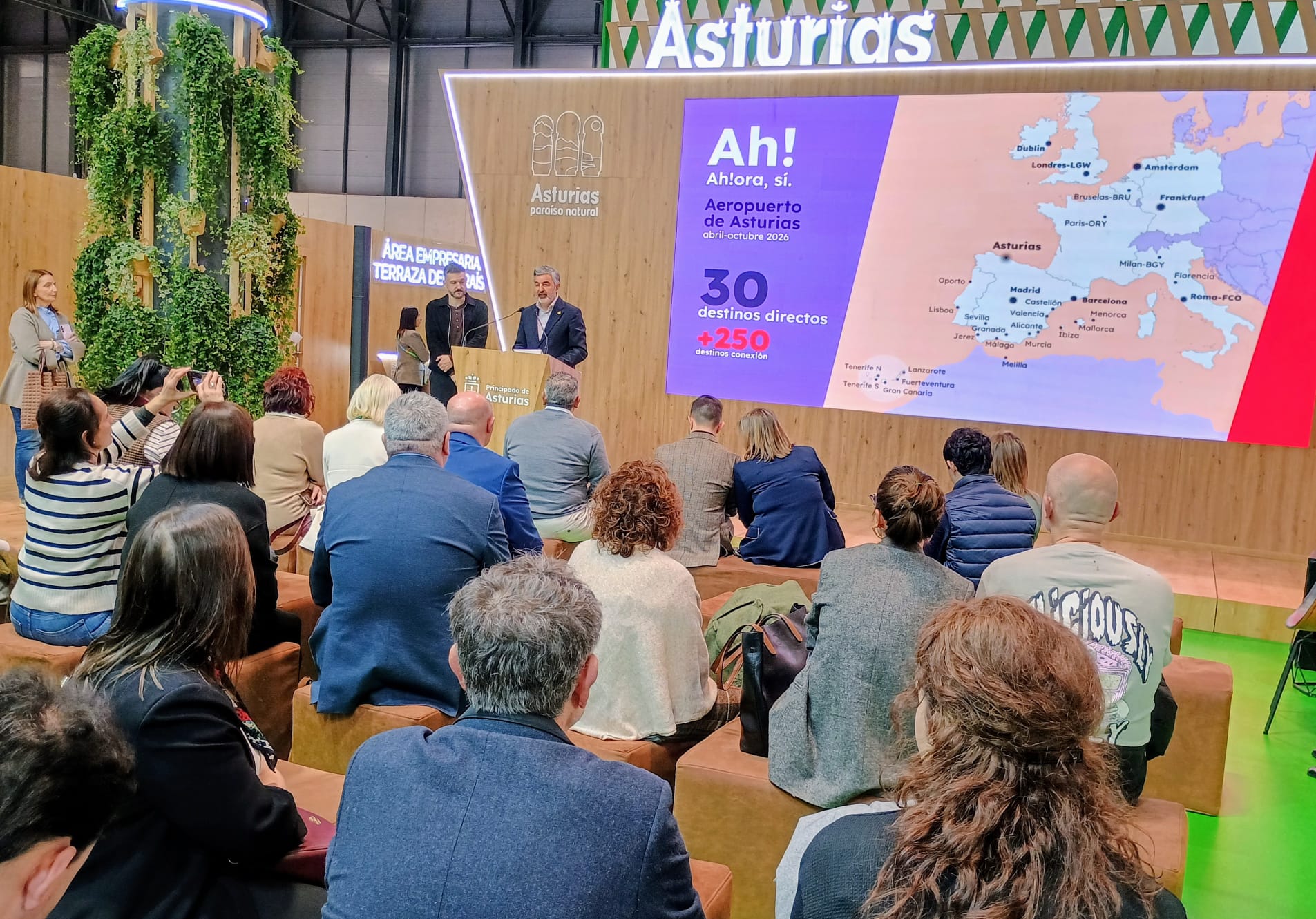 Asturias disfrutará este año de la mayor oferta de plazas aéreas de su historia: más de 1,6 millones de asientos que ya están a la venta para la temporada de verano, que va de abril a octubre. El consejero de Movilidad, Medio Ambiente y Gestión de Emergencias, Alejandro Calvo, y el viceconsejero de Infraestructuras y Movilidad Sostenible, Jorge García, han presentado hoy en Fitur los objetivos de la Estrategia de Conectividad Aérea diseñada para una Asturias hiperconectada, que registra cifras récord de usuarios en el aeropuerto, la alta velocidad ferroviaria y el transporte público por carretera.