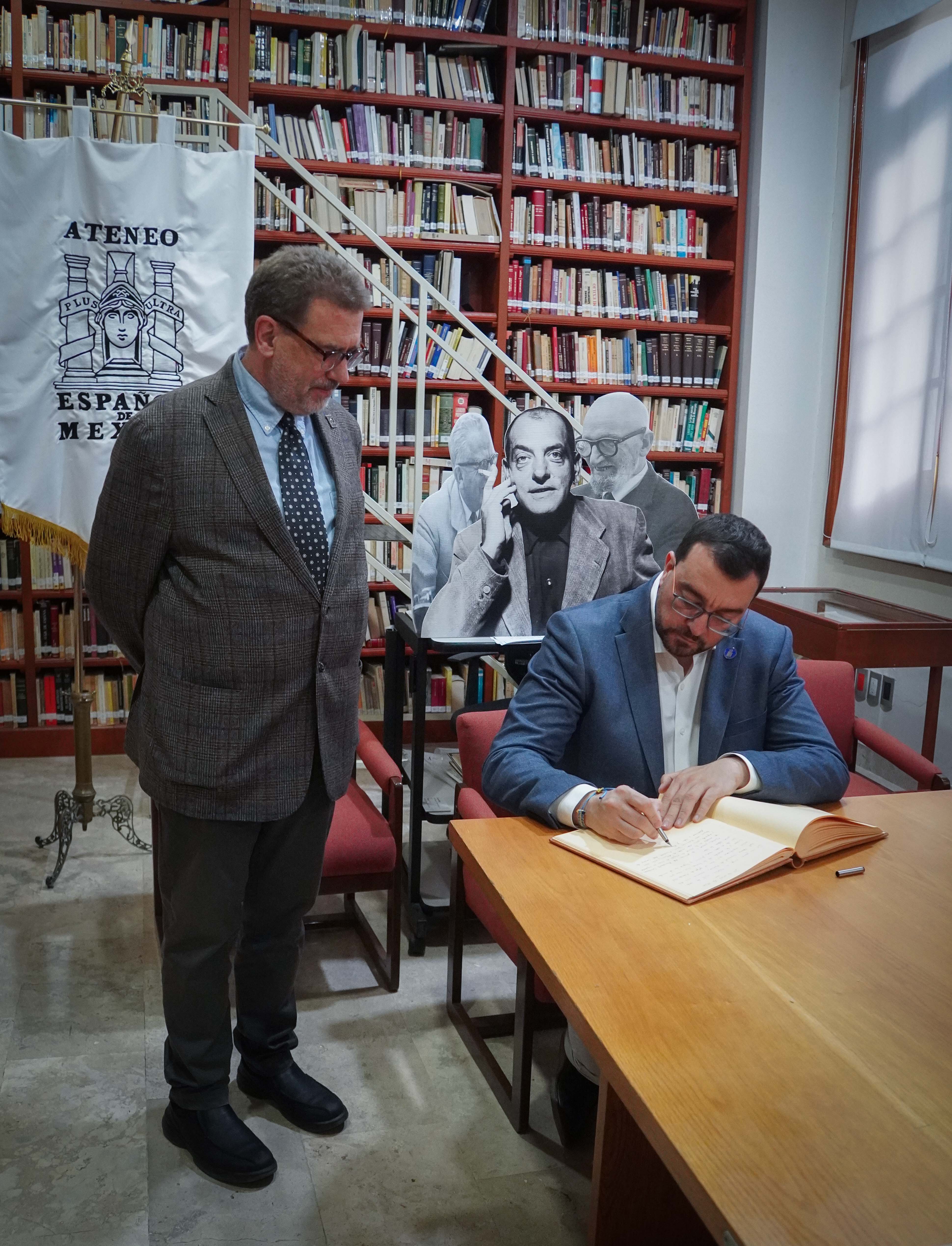 El presidente del Ateneo Español en México, Juan Luis Bonilla, y el presidente del Principado de Asturias, Adrián Barbón.